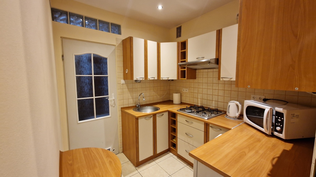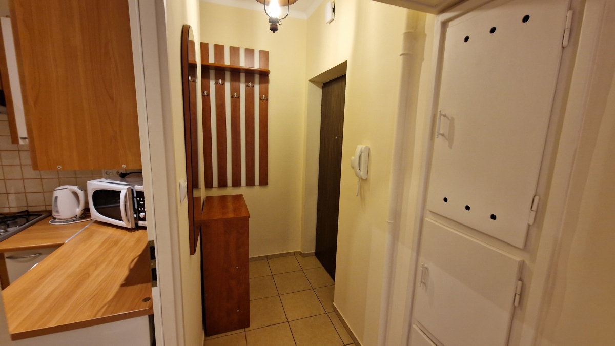 Mieszkanie składa się z jasnego pokoju, osobnej kuchni, przedpokoju i łazienki z oknem.