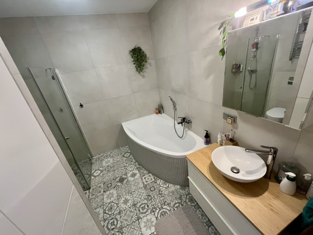 • duża łazienka z wanną i prysznicem