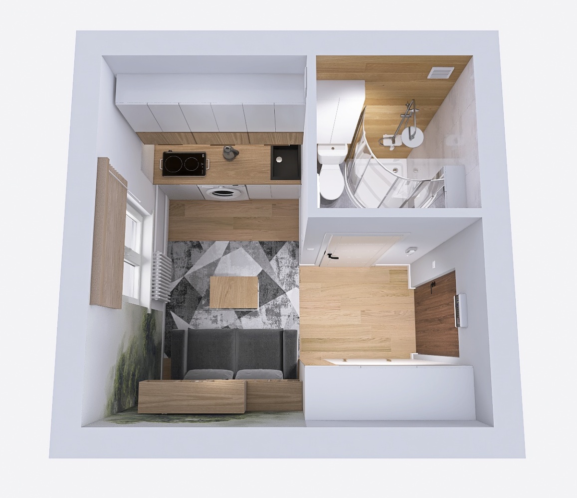 – pokoju z aneksem kuchennym,