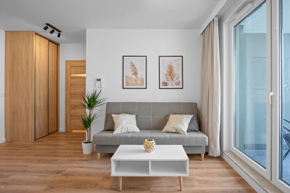 For sale: a 2-room apartment in Scandinavian style in the prestigious Miasteczko Greenwood estate located on Monteverdiego Street in Warsaw, Białołęka district. Finished to a high standard.