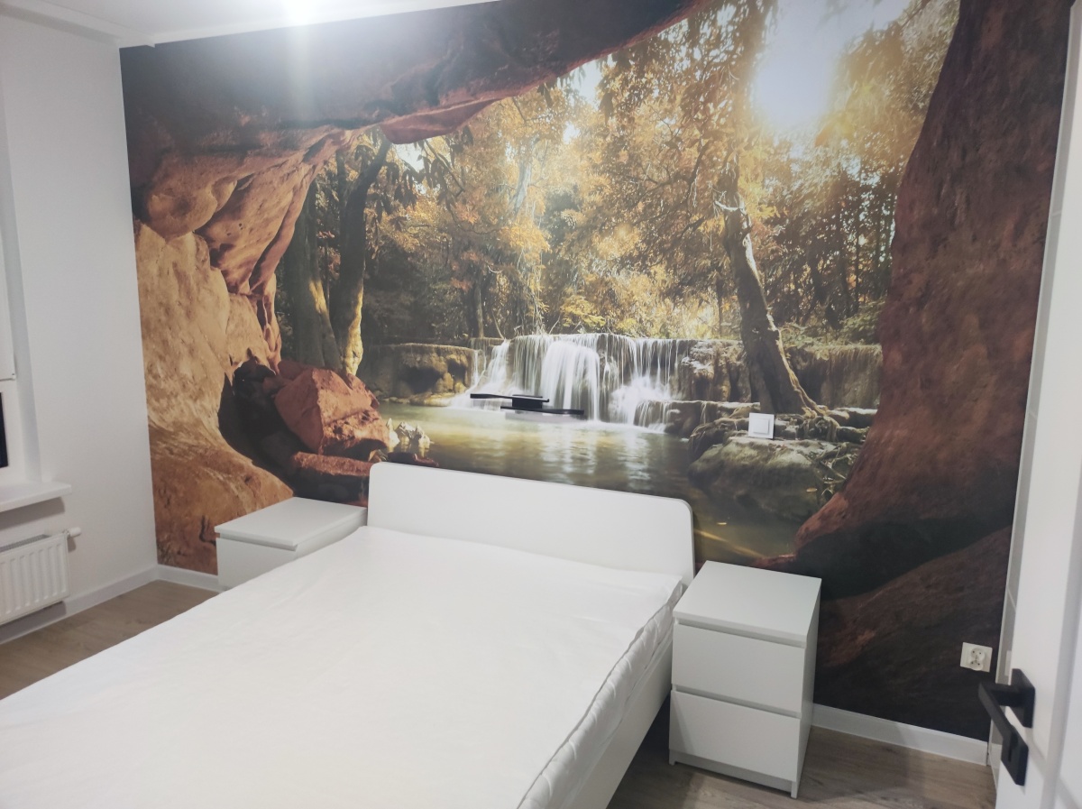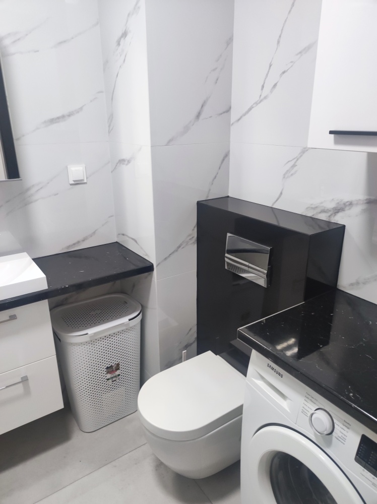 Mieszkanie jest w pełni wyposażone – do dyspozycji najemców są pojemne meble, pralka, lodówka, piekarnik, płyta indukcyjna, zmywarka, duży telewizor, kuchenka mikrofalowa, bezprzewodowy odkurzacz.