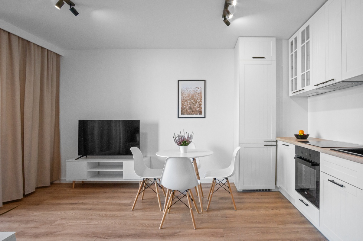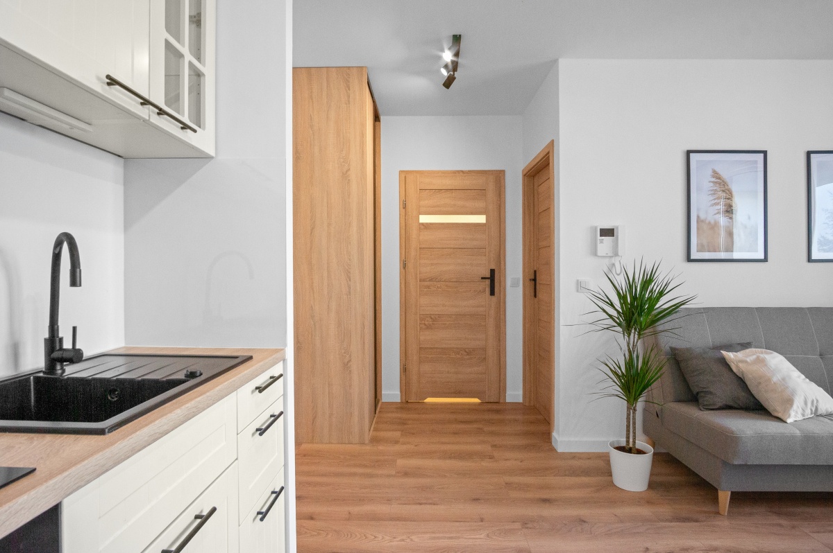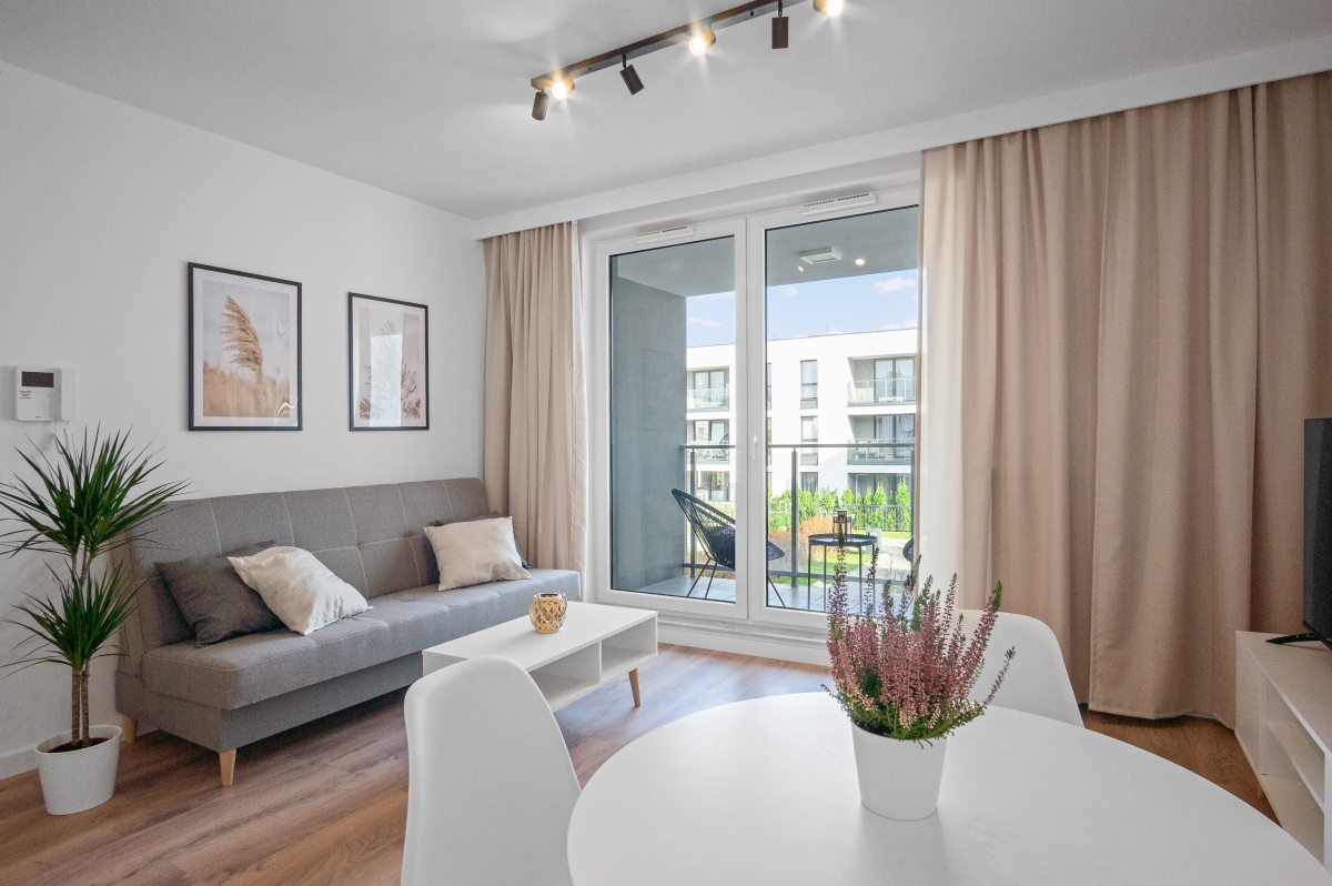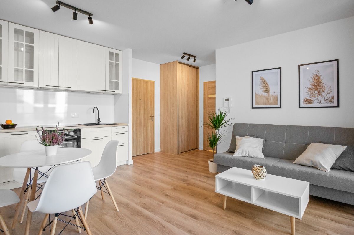 For sale: a 2-room apartment in Scandinavian style in the prestigious Miasteczko Greenwood estate located on Monteverdiego Street in Warsaw, Białołęka district. Finished to a high standard.