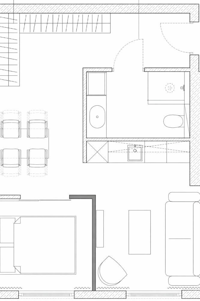 Ponadstandardowa wysokość pomieszczeń (3 metry) zapewnia poczucie przestrzeni i bardzo dobre doświetlenie wnętrza. Duże okna dodatkowo potęgują efekt przestronności i zapewniają dużo naturalnego światła przez cały dzień. Przeszklona ściana nadaje mieszkaniu nowoczesny, loftowy charakter.