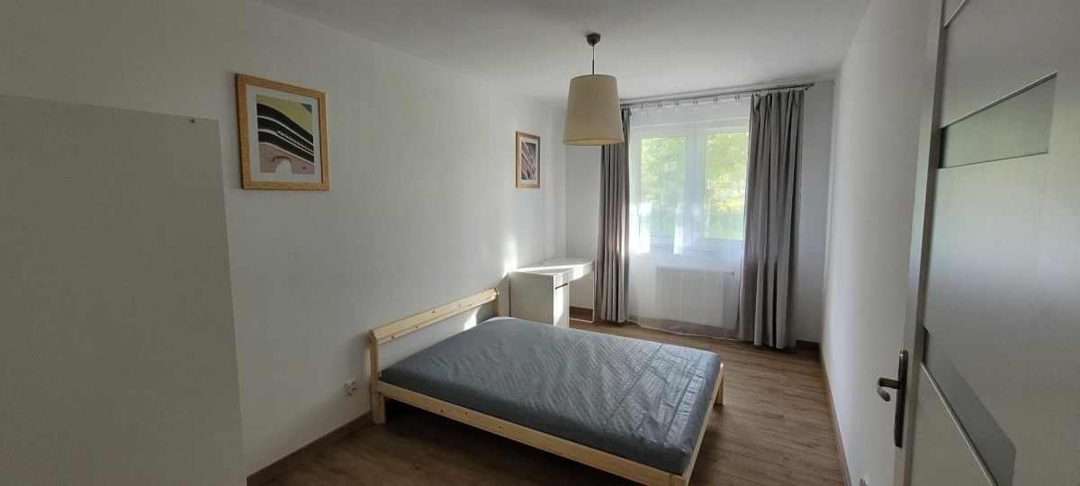 The apartment is quiet and spacious, large balcony doors with access to the garden, quiet neighborhood, lots of green areas, close to the Ratyn forest and park,