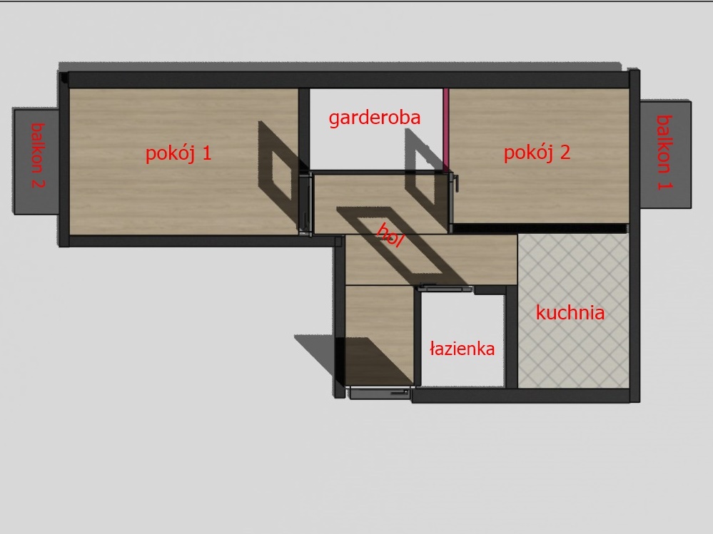 -w sypialni wydzielona duża garderoba z drzwiami przesuwnymi która poprawia funkcjonalność mieszkania i daje dodatkową przestrzeń do przechowywania ,nie zaburzając przy tym funkcjonalności samego pomieszczenia