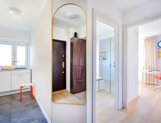 Lokal znajduje się na 3. piętrze, co zapewnia ciszę, poczucie prywatności oraz naturalne światło. Przemyślany układ mieszkania uzupełnia przestronny przedpokój z dużą, praktyczną szafą, oferujący wiele miejsca do przechowywania. Wnętrze utrzymane jest w jasnej kolorystyce. Sercem mieszkania jest salon z wyjściem na duży, słoneczny balkon. Okna oraz wyjście na balkon zapewniają doskonałe doświetlenie, a widok rozciąga się na otwartą przestrzeń – w najbliższym otoczeniu nie ma zabudowy. Ta perspektywa sprawia, że balkon stanowi idealne miejsce relaksu. Dwie pozostałe sypialnie są proporcjonalne i ustawne, co ułatwia aranżację zgodnie z potrzebami domowników – mogą pełnić funkcję pokoi dziecięcych, sypialni głównej lub domowego biura. Mieszkanie posiada widną, oddzielną kuchnię, w pełni zabudowaną i wyposażoną w sprzęt AGD, który pozostaje w cenie. Całość dopełnia przestronna łazienka oraz osobne WC, co stanowi rzadki atut i znaczne udogodnienie dla rodziny. Do mieszkania przynależy również duża piwnica stanowiąca dodatkowe miejsce do przechowywania oraz wózkownia dla mieszkańców.