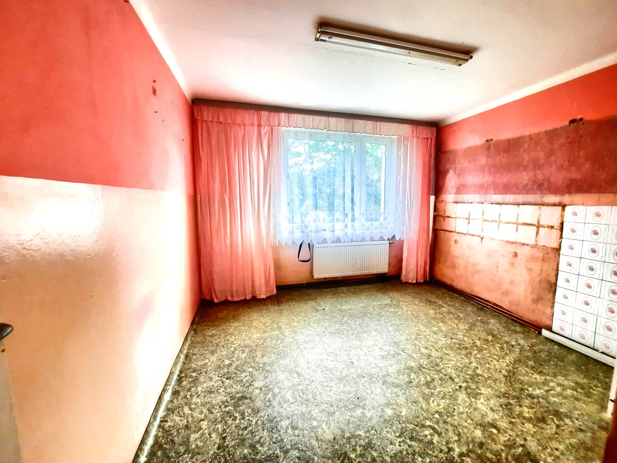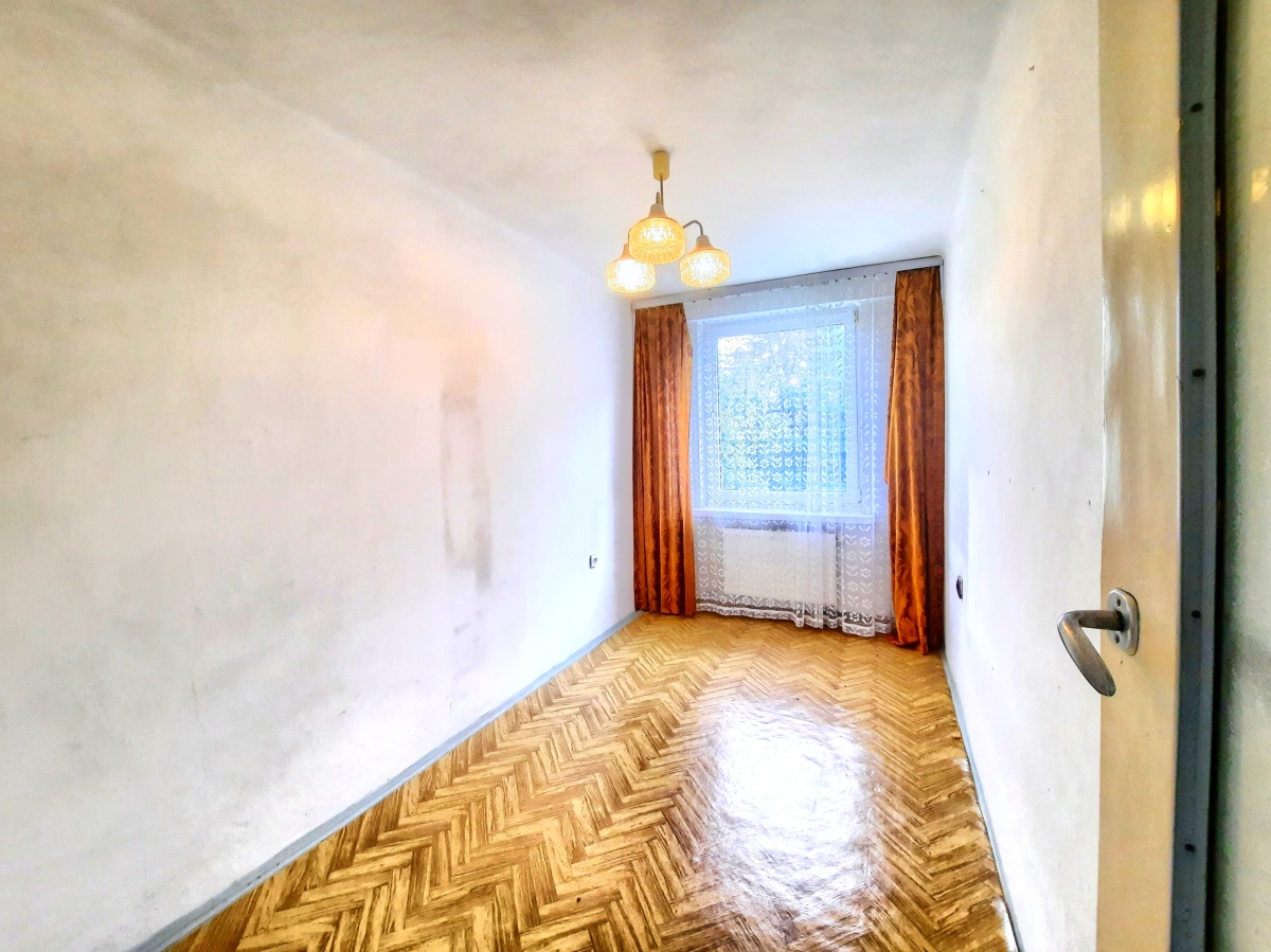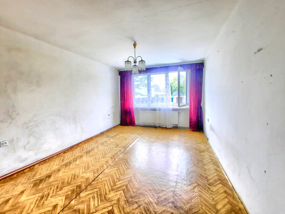 Mieszkanie na pierwszym piętrze dwu piętrowego budynku z 1980 roku. Do mieszkania przynależy duża piwnica i miejsce postojowe na terenie wspólnoty.