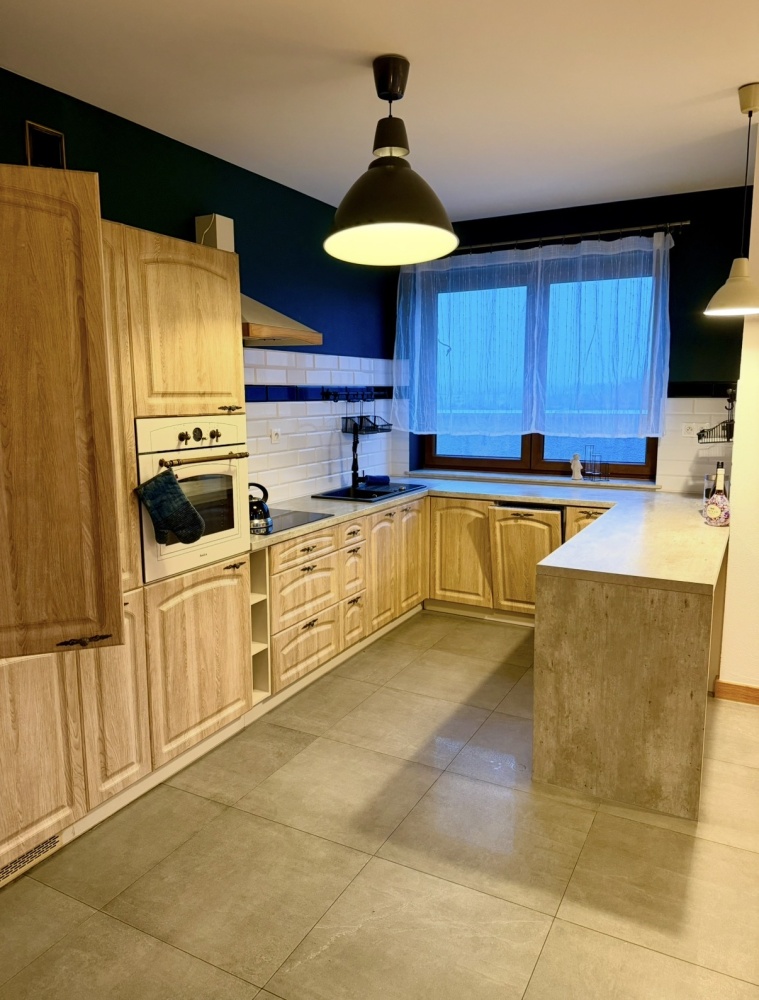– przestronnego i bardzo dobrze nasłonecznionego salonu z kuchnią