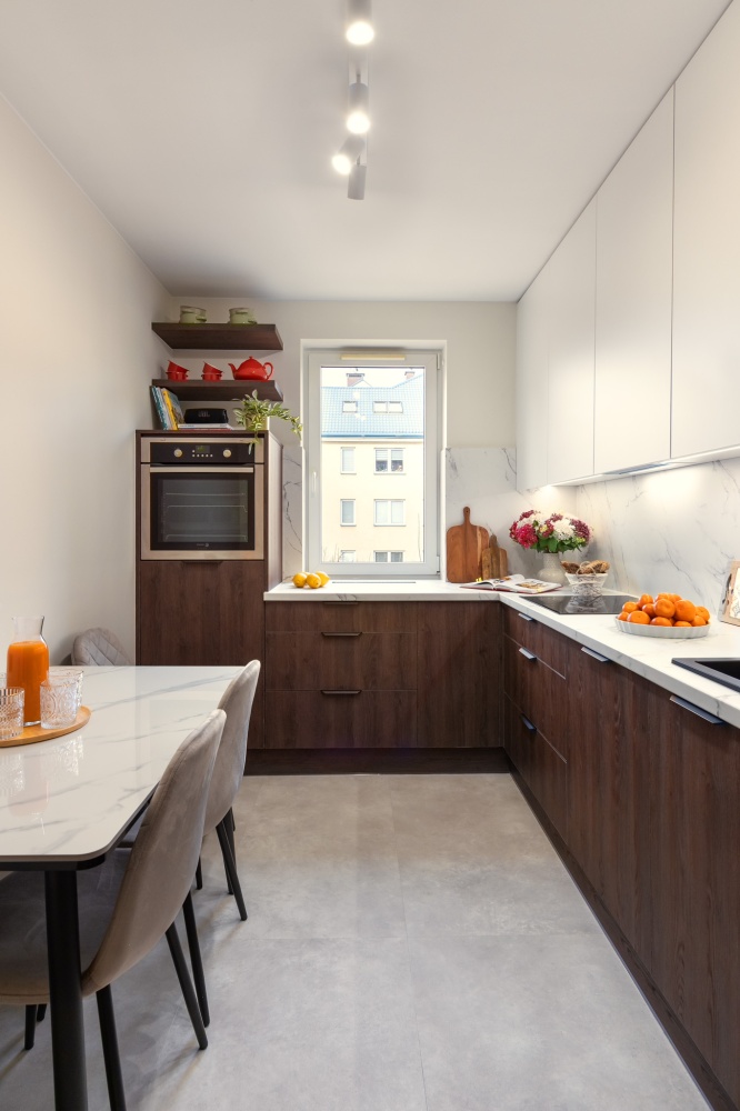 – duża kuchnia z zabudową na wymiar, pełne AGD oraz pojemna, przeszklona witryna z oświetleniem LED
