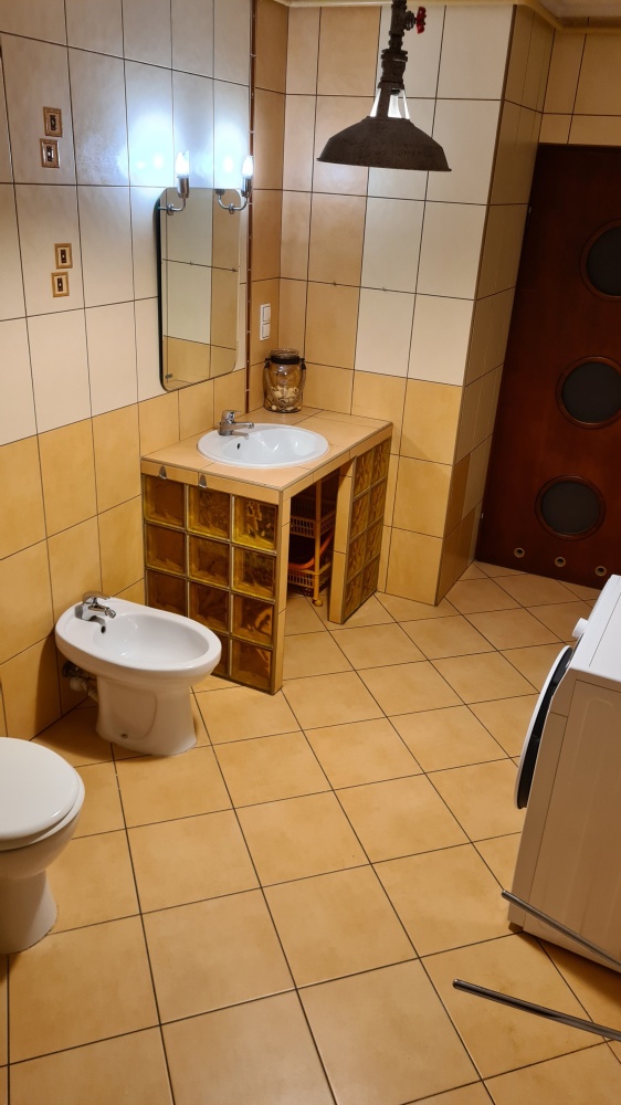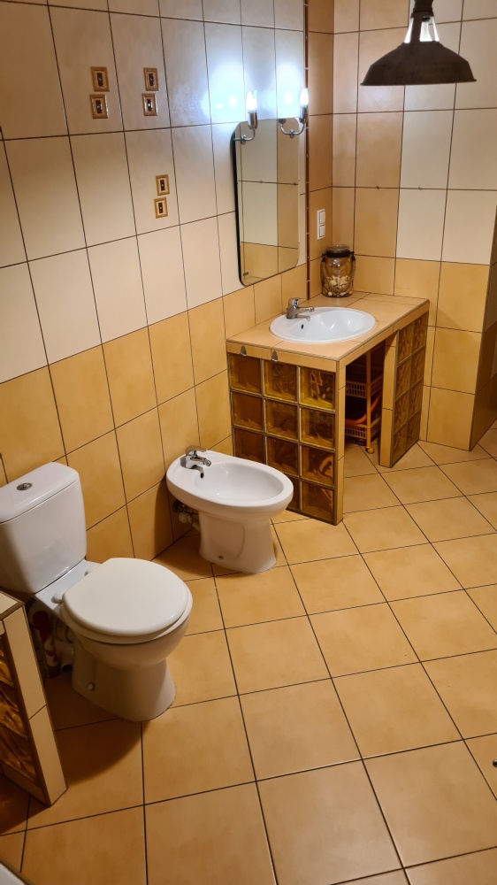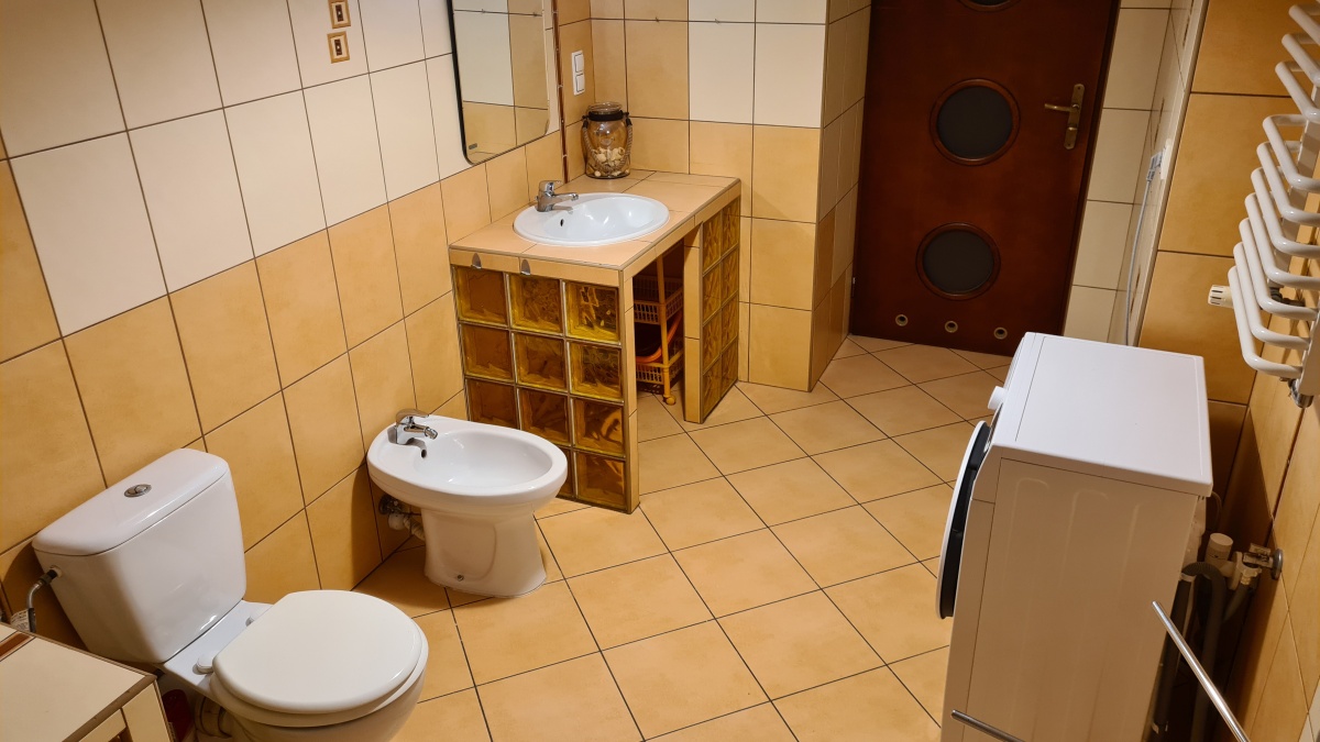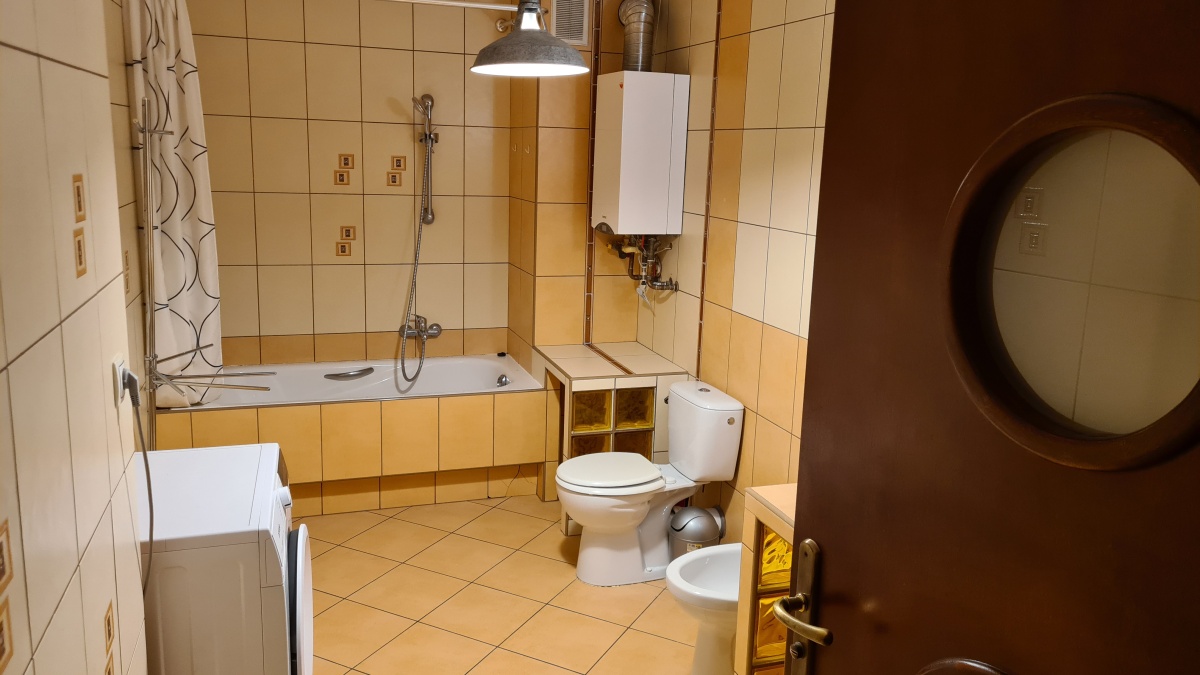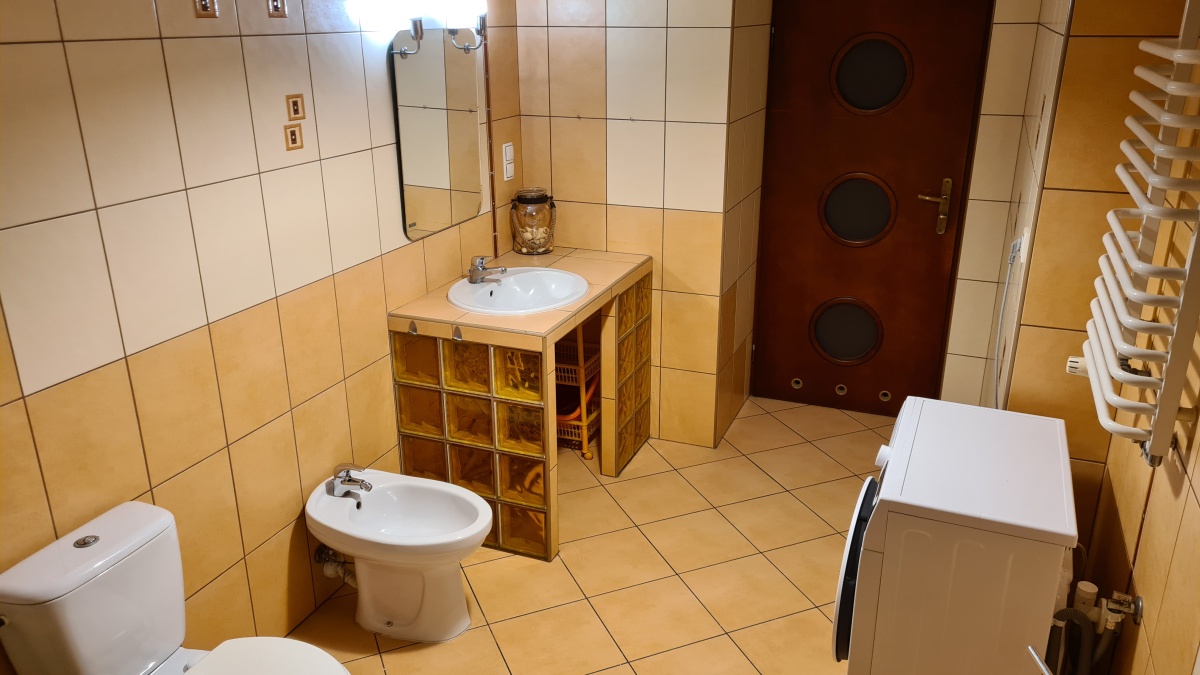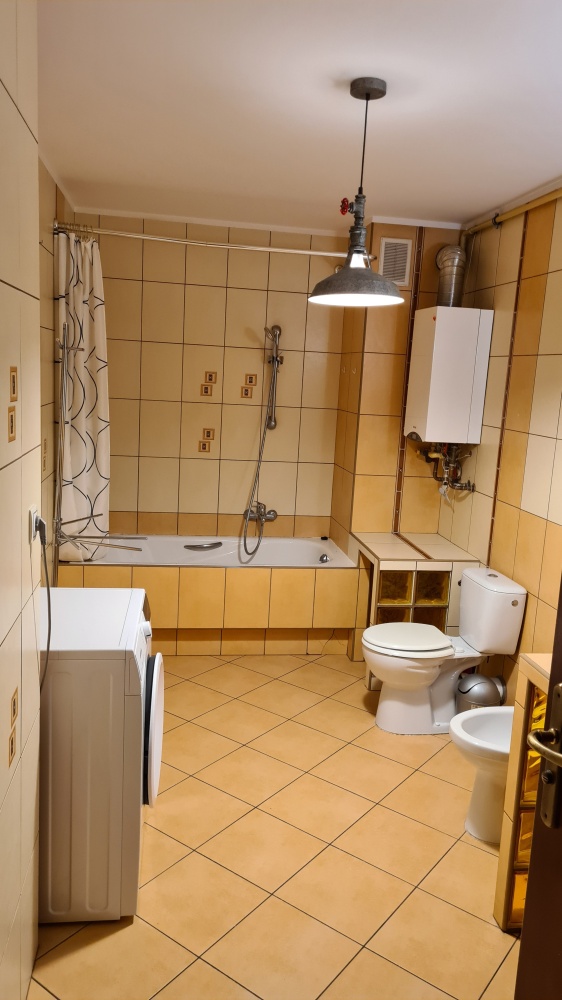 – łazienka z wanną/prysznicem, bidetem, pralką i piecem gazowym dwufunkcyjnym;