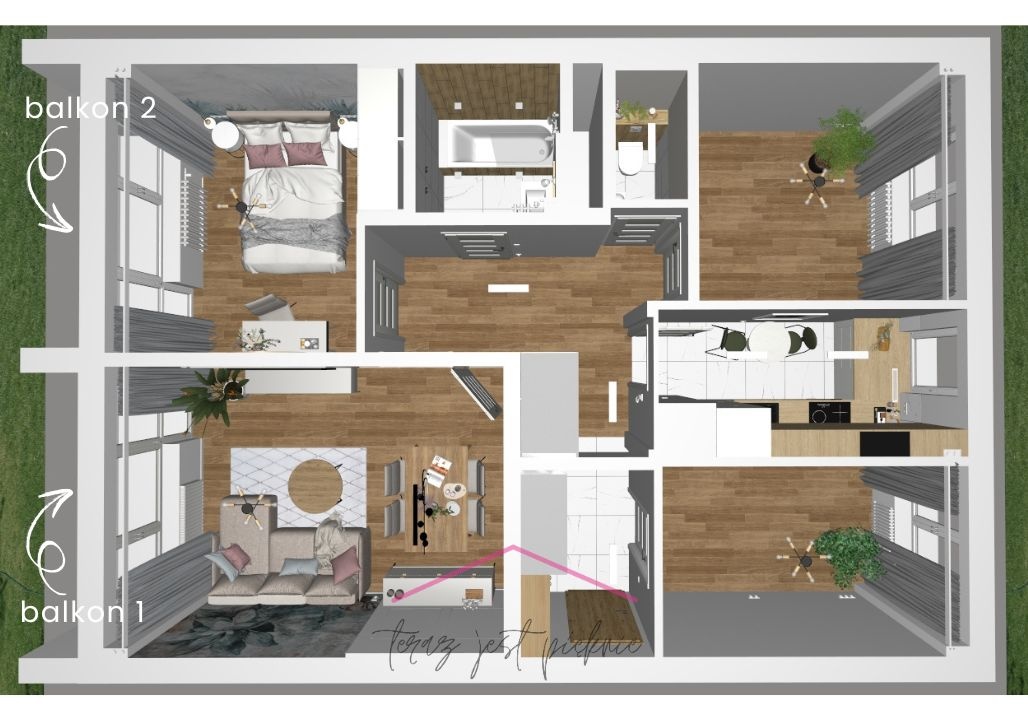 – MIESZKANIE 4 POKOJOWE O POWIERZCHNI 67,5 m2 składa się z: