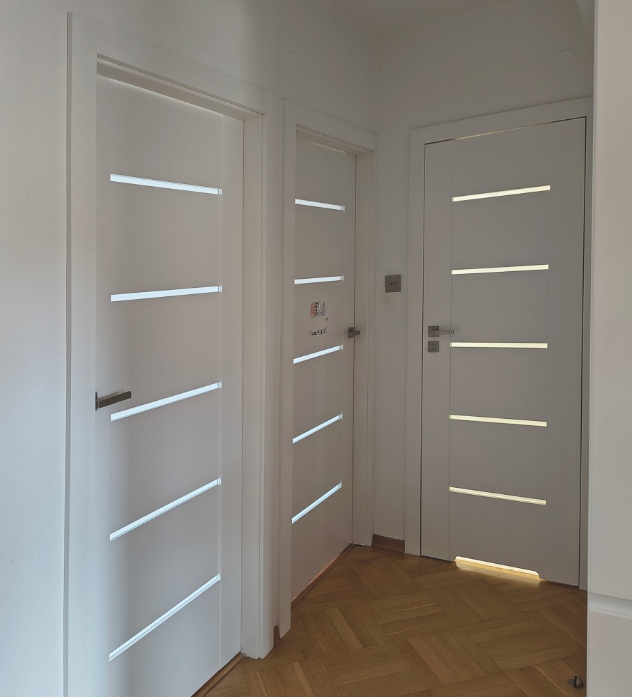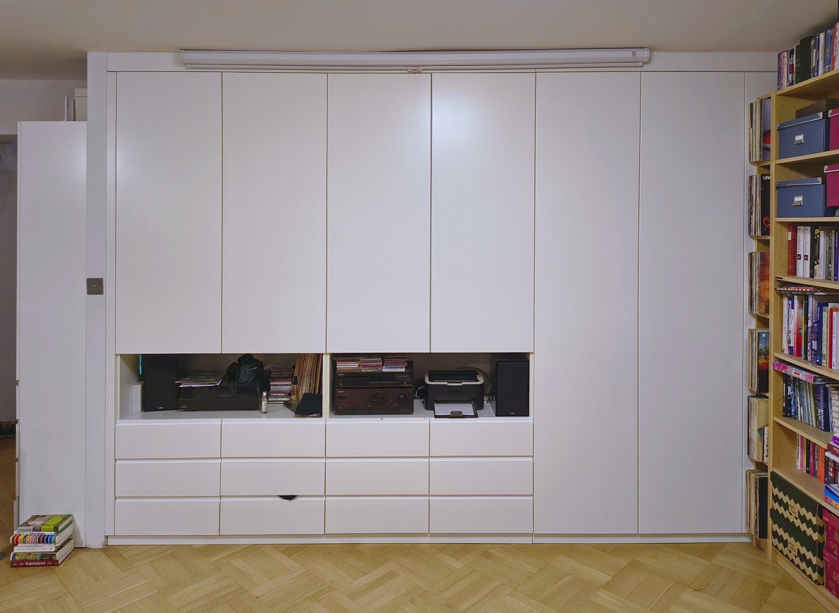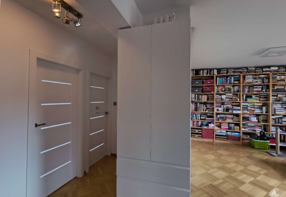 Garderoba (ok. 2 m²): Wejście z przedpokoju. Miejsce na odzież wierzchnią i sporo miejsca na kurtki, płaszcze i buty. Jest to toaleta zaadaptowana na schowek, instalacje zostały zachowane, można przywrócić WC.