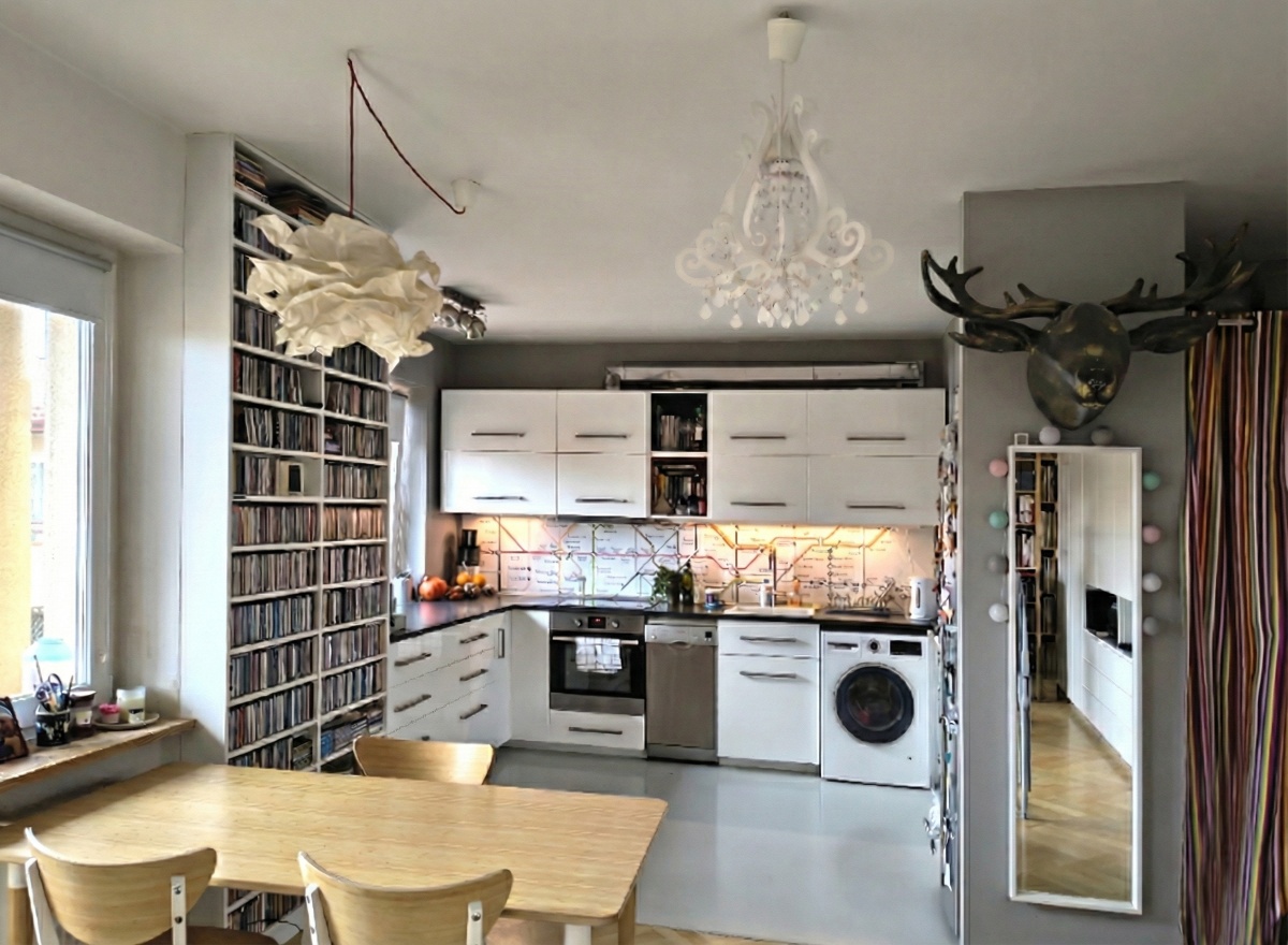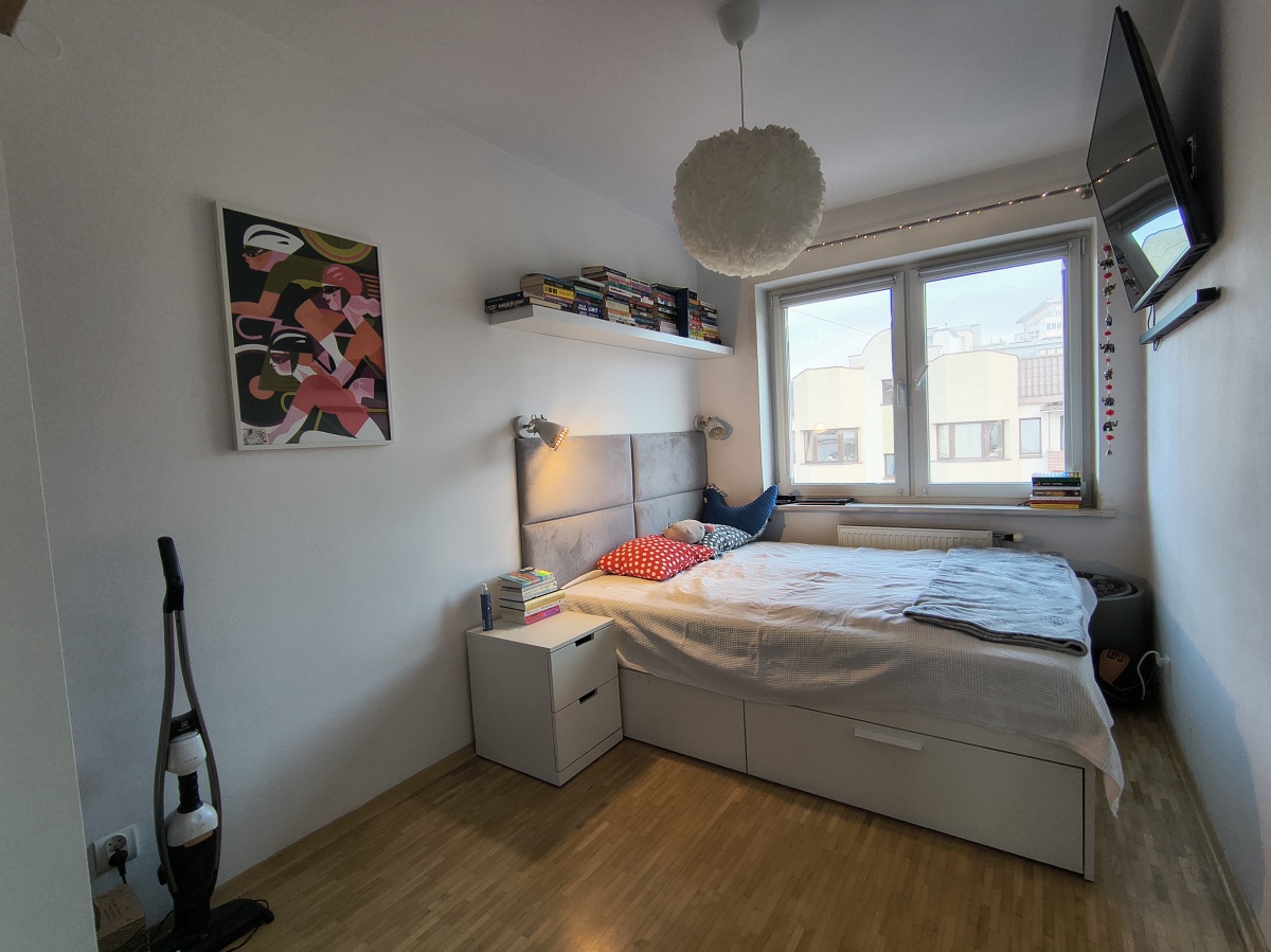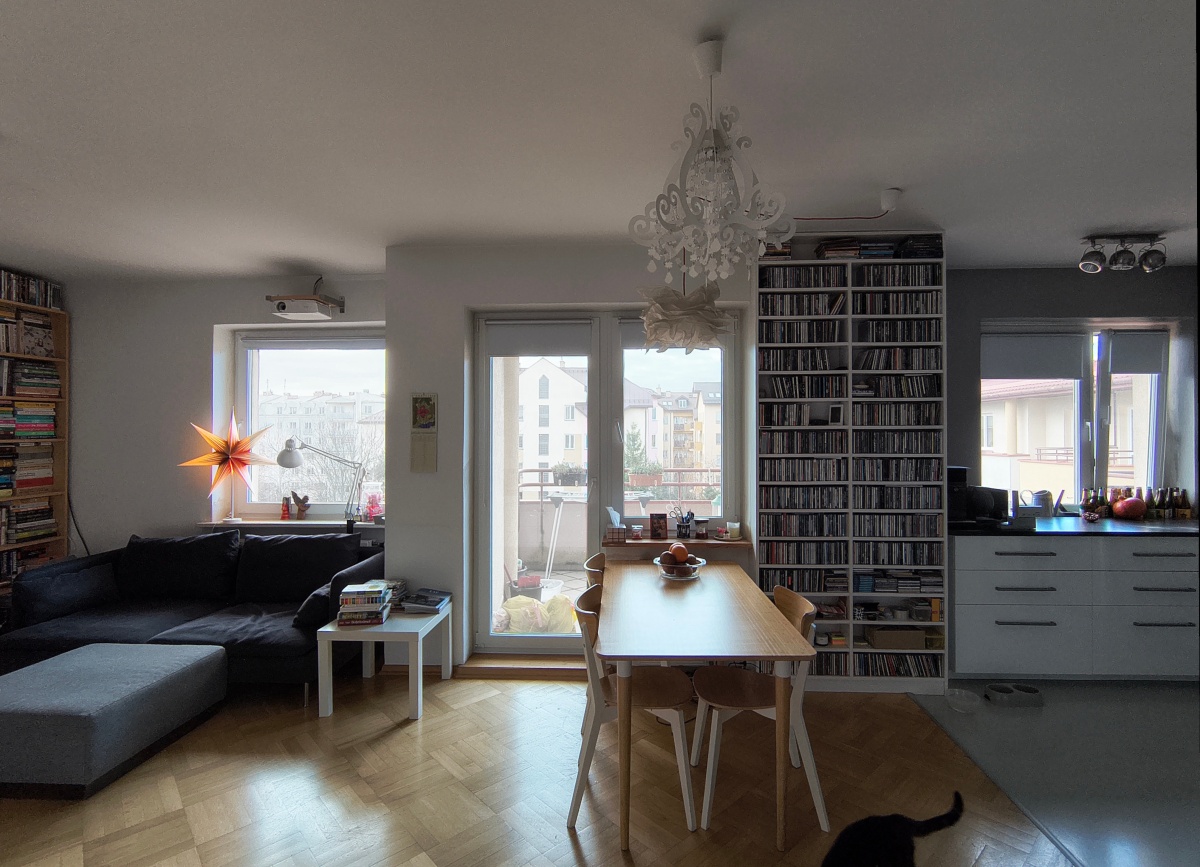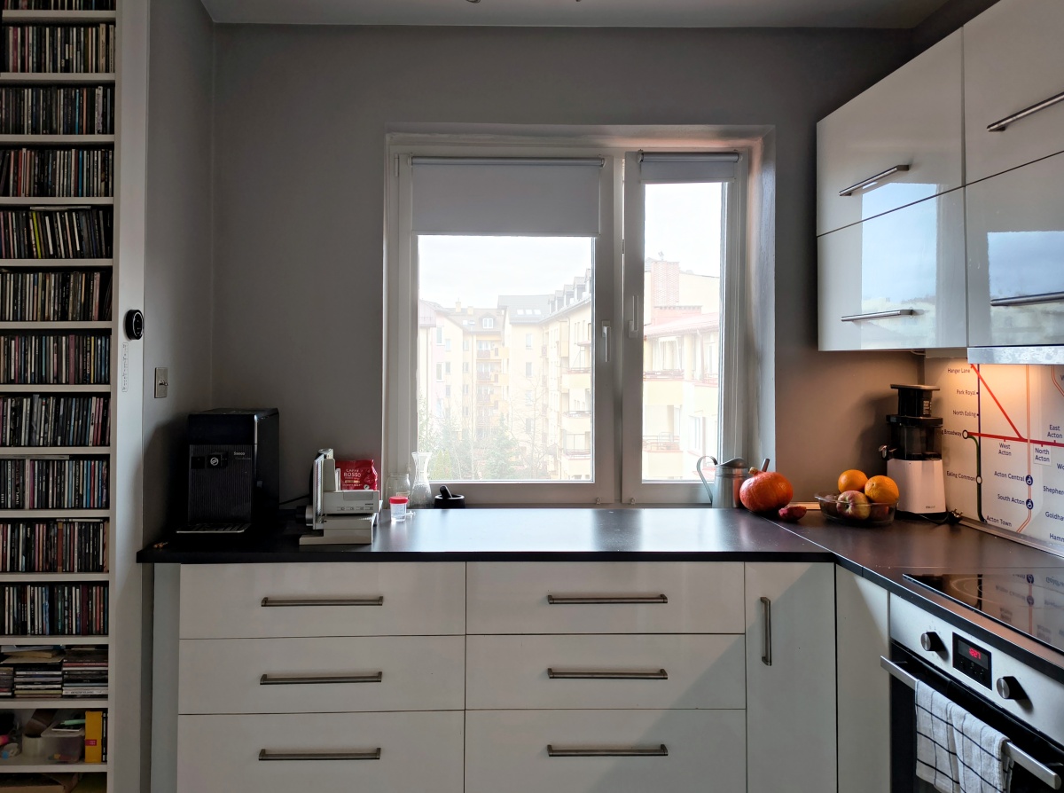 Wyposażenie: W salonie bardzo pojemna szafa wnękowa (robiona na zamówienie), w kuchni zabudowa IKEA (13 szafek) i sprzęt AGD.