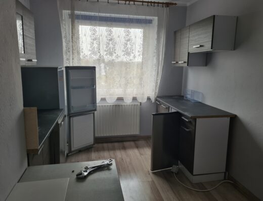 To otwarta przestrzeń w pełni wyposażona we wszystkie urządzenia niezbędne do komfortowego mieszkania. Kuchnia jest połączona z częścią jadalną i dalej z salonem. Meble, które znajdują się w kuchni, zostały przygotowane przez stolarza. Bardzo duża ilość szafek i szuflad. Każda dostępna przestrzeń została wykorzystana do maksimum.