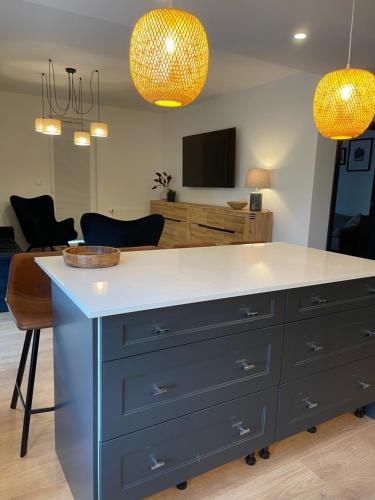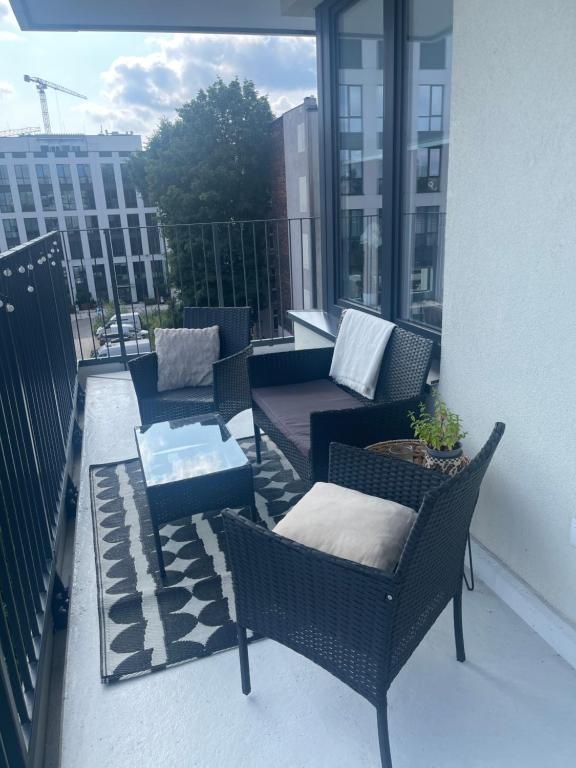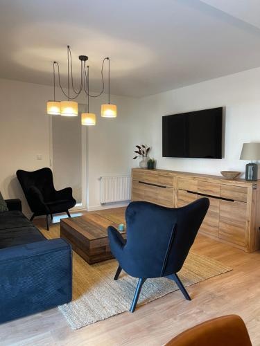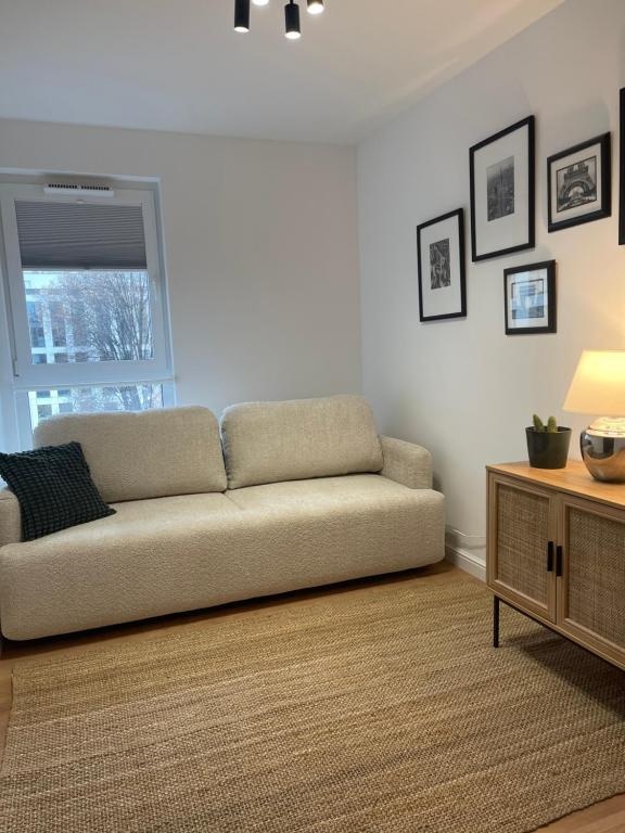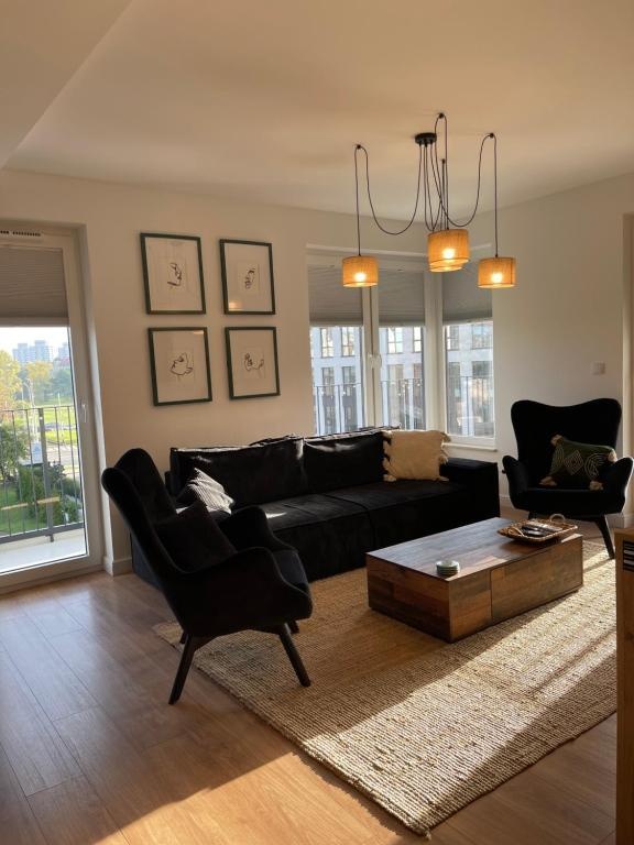 Wnętrze zostało wykończone w wysokim standardzie, z wykorzystaniem nowoczesnych materiałów oraz spójnej, ponadczasowej estetyki. Apartament jest w pełni umeblowany i gotowy do wprowadzenia lub dalszego wynajmu – bez żadnych dodatkowych nakładów finansowych.