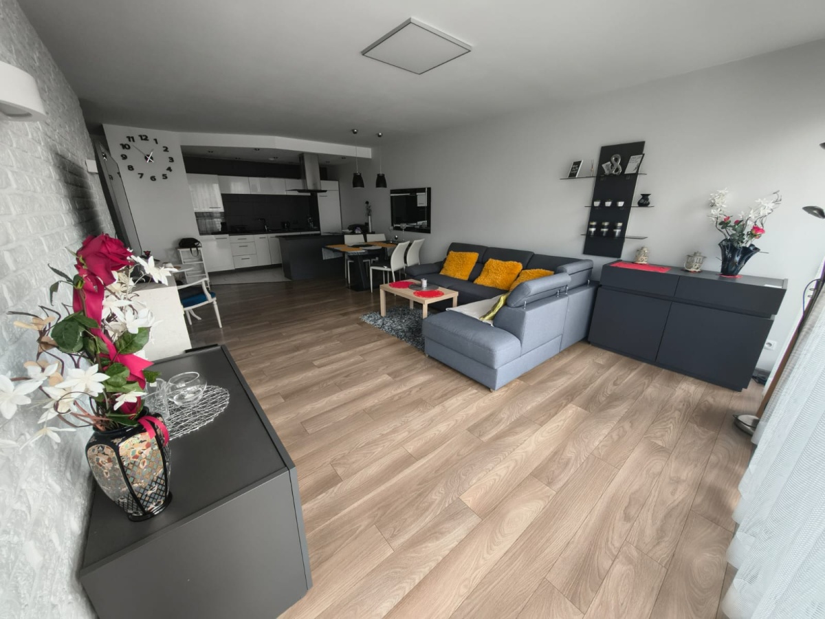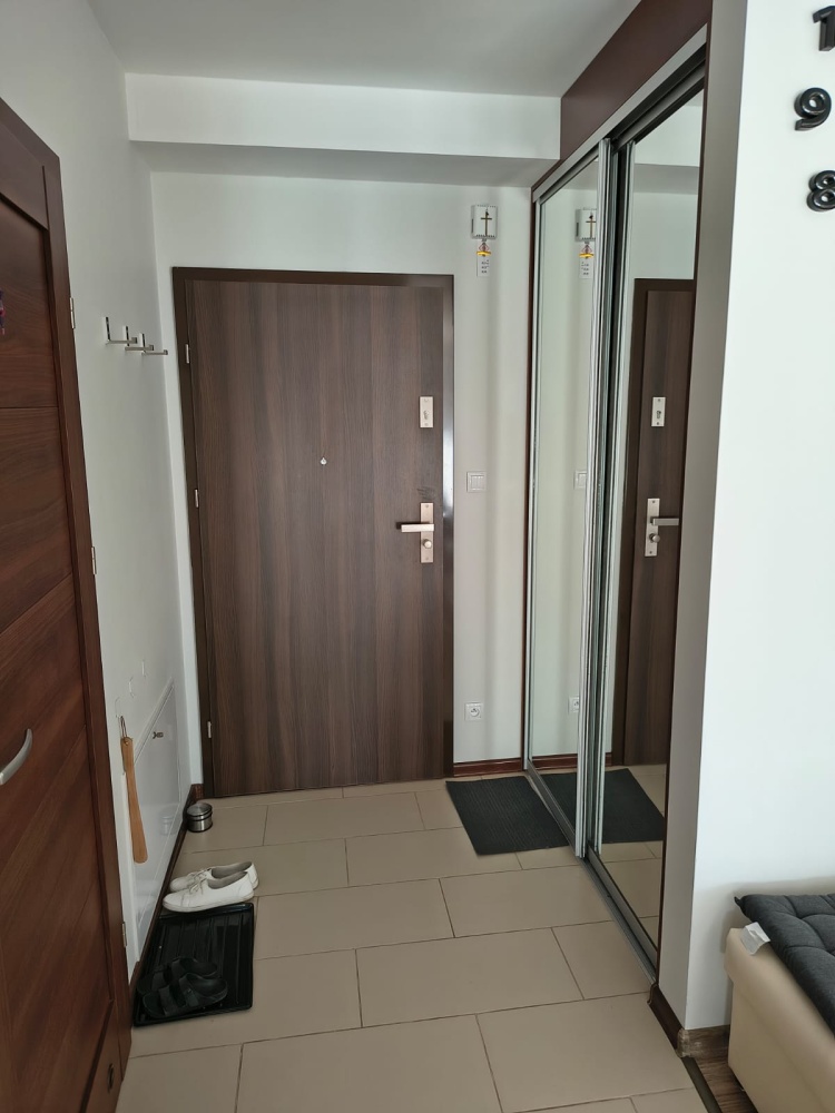 (duży salon z aneksem kuchennym, duża sypialnia) przedpokój , duża łazienka. Apartament całkowicie umeblowany i wyposażony, strona słoneczna, z tarasem (wyjście z salonu i sypialni), przestrzenny widok, miejsce parkingowe widoczne z okna, cicha okolica. Mieszkanie ciepłe i słoneczne, rolety zewnętrzne. Ogrzewanie podłogowe (wodne) plus kaloryfery. Drzwi antywłamaniowe, klatka cicha, zadbana, elegancka, mili sąsiedzi. Na osiedlu widoczny z okien osiedlowy plac zabaw, miejsce ciche i spokojne, blisko ośrodka zdrowia, przedszkola, szkoły, centrum handlowego, terenów zielonych, doskonałe połączenie z A4 i S1. Do dyspozycji piwnica i miejsce parkingowe (+ 300,00 zł).