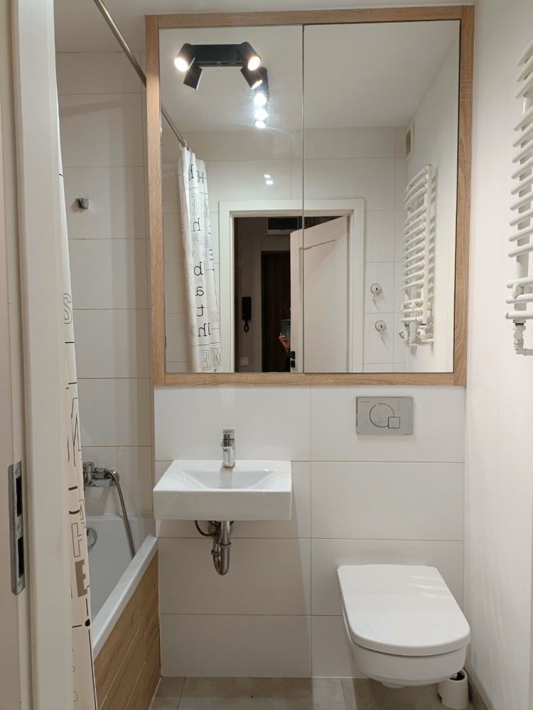 A modern, architect-designed 2-room apartment (38 m²) available for long-term rent. Located on Kondratowicza Street, right next to the Bródno Metro station. Special price until April!