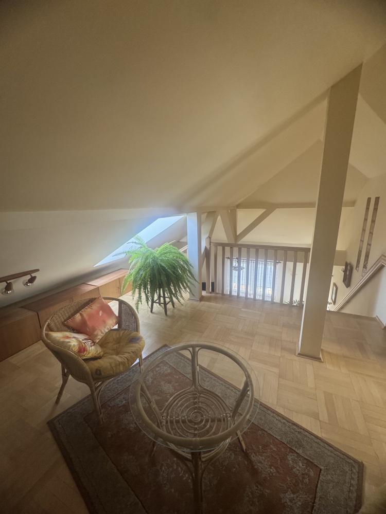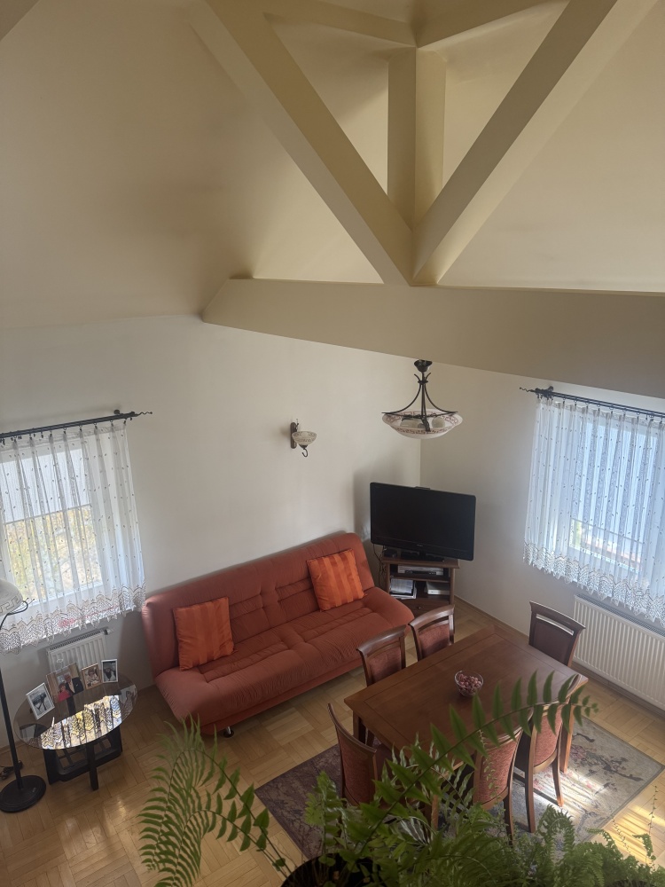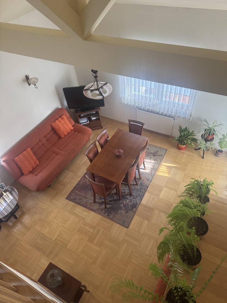 Mieszkanie w spokojnej i zielonej okolicy, blisko centrum Kielc, położone na zamkniętym osiedlu. Pomimo bliskości centrum miasta, w mieszkaniu jest bardzo cicho. Zaletą mieszkania jest jego przestronność. Mieszkanie dwupoziomowe, z atrakcyjną antresolą w pokoju dziennym. Osobna kuchnia z otwartym przejściem do salonu. Mieszkanie wykończone, stan do zamieszkania – po remoncie. W całym mieszkaniu parkiet z drewna bukowego. Blok z 2001 roku z cegły. Okna drewniane.