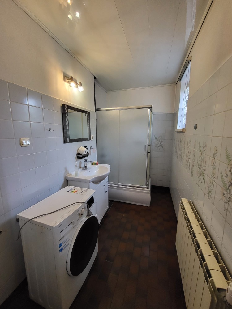 Na dole – pokój, kuchnia, łazienka i dodatkowe WC.