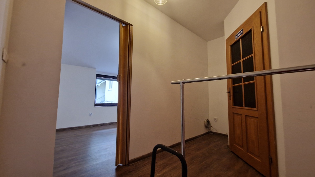 Powierzchnia lokalu to 13m2 + antresola, na dole znajduje się pomieszczenie główne, a na górze drugie pomieszczenie, toaleta i niewielki przedpokój. Ciepła woda z niewielkiej termy elektrycznej, ogrzewanie – nowoczesny piec akumulacyjny. Lokal posiada domofon przy głównym wejściu z ulicy do kamienicy.
