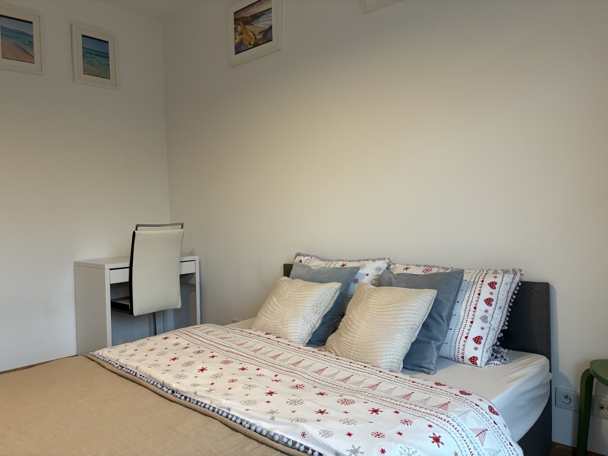 • Standard wykończenia: Mieszkanie w pełni urządzone na własne potrzeby właściciela z dbałością o jakość materiałów i funkcjonalność przestrzeni. Mieszkanie umeblowane meblami wykonanymi na wymiar, wykorzystujące maksymalnie powierzchnię. Nowe meble kuchenne, AGD wysokiej klasy, meble drewniane (stół, krzesła), dodatkowo, kanapa, fotel, komody, TV. Ponadto łazienka z nowym prysznicem, pralką oraz automatyczną suszarką. Sypialna z szafą wykonaną na wymiar oraz podwójne nowe łóżko. Mieszkanie zostało wyposażone w wysokiej jakości klimatyzację, zarówno w salonie i sypialni. Ogromny taras dostępny zarówno z salonu, jak i sypialni.