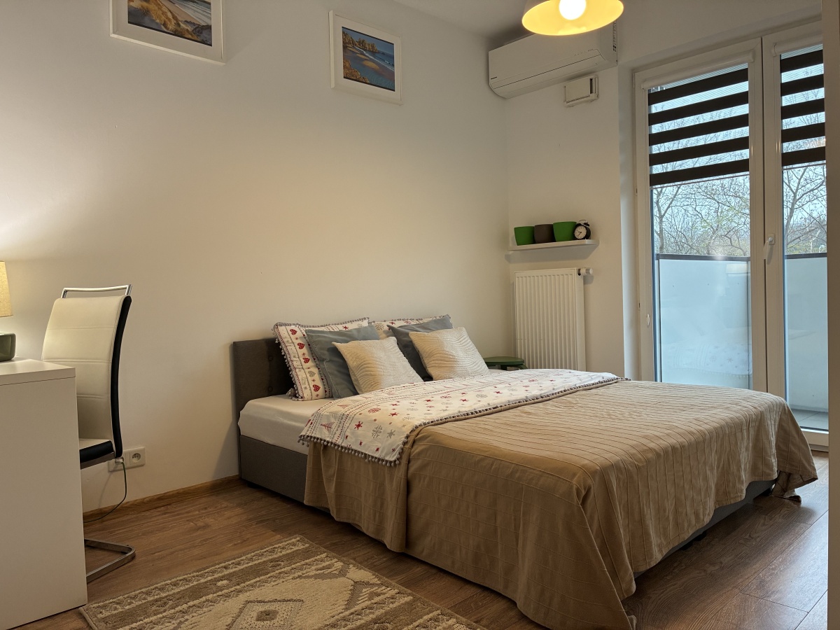 For occasional lease, a modern, fully equipped, sunny 2-room apartment (42.90 m² plus a spacious balcony of 9.53 m²), located on the 1st floor of a 4-storey building from 2016, in the prestigious Dom Development – Żoliborz Artystyczny investment.
