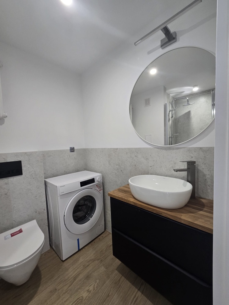 Mieszkanie zostało świeżo wyremontowane – wymieniono wszystkie instalacje, dzięki czemu nowy właściciel może cieszyć się spokojem i brakiem konieczności dodatkowych nakładów finansowych. Wnętrze zostało urządzone w nowoczesnym i funkcjonalnym stylu, z dbałością o detale.