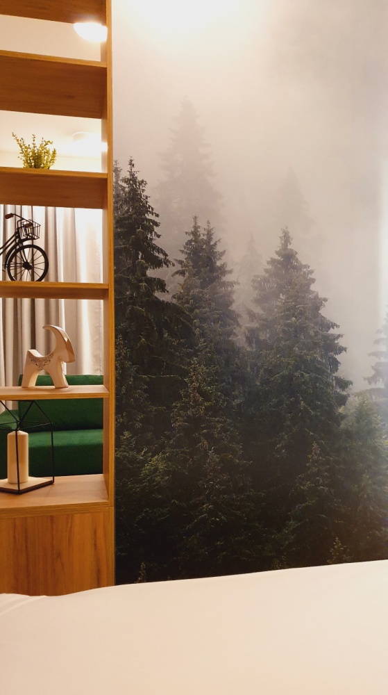 Wyraźne wydzielenie części sypialnej, zastosowanie stonowanych kolorów lasu, duże łóżko, oświetlenie do czytania to gwarancja przestrzeni, która daje chwile wytchnienia.