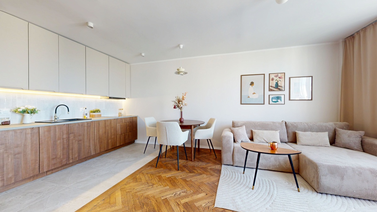 Mieszkanie w pełni wykończone i wyposażone: remont obejmował wymianę wszystkich instalacji, gładzie, odświeżenie drewnianego parkietu, pełne wykończenie. Gotowe do wprowadzenia, niezamieszkane. Cena obejmuje wyposażenie wraz ze sprzętami agd na gwarancji.