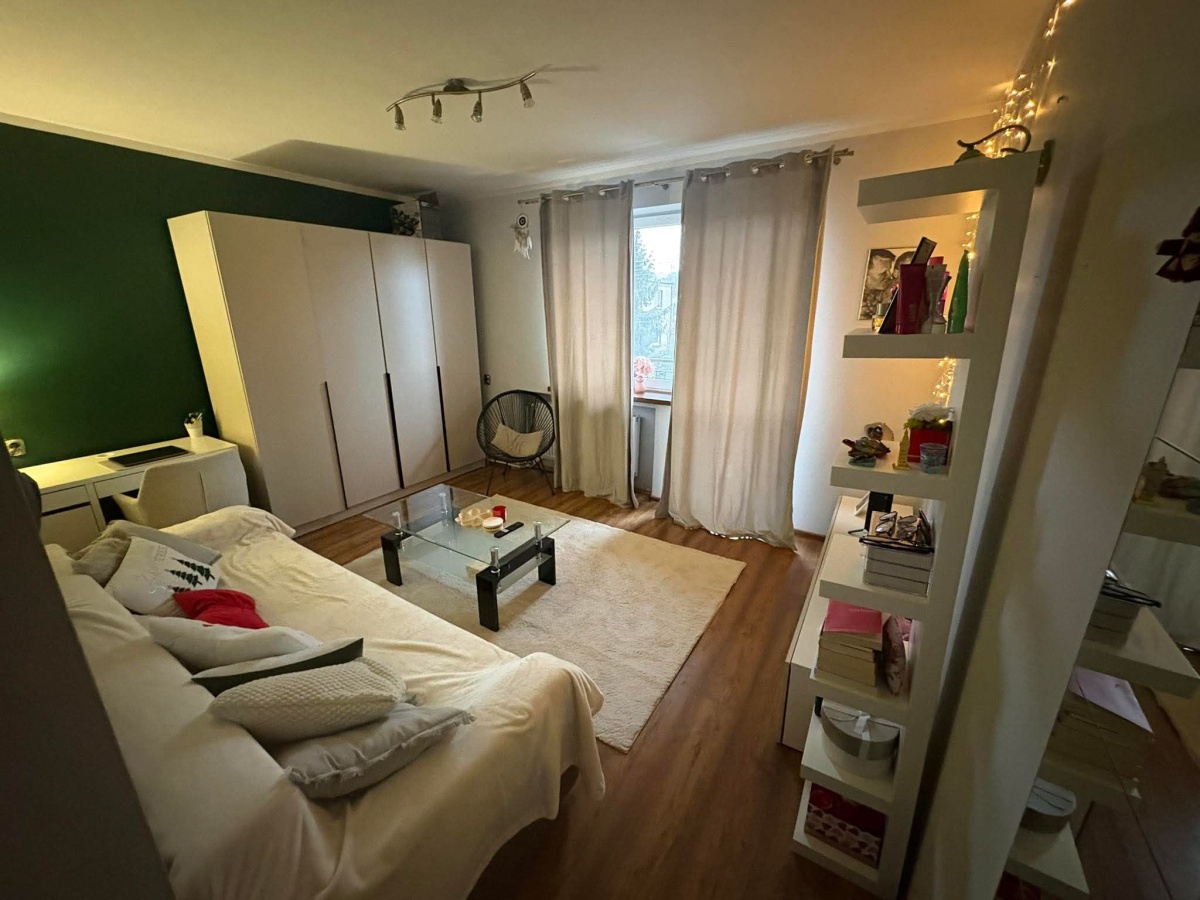 1. Parter – dwa duże pokoje, duży balkon, duża kuchnia, łazienka, w trakcie remontu, wymieniony piec gazowy dwufunkcyjny, nowe płytki i panele, okna PCW, sufity karton gips, nowe drzwi wewnętrzne.