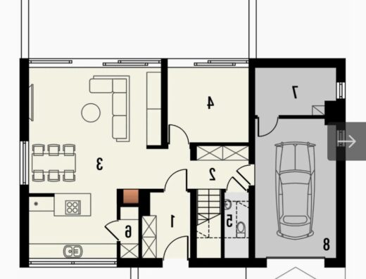 Na parterze domu znajdziemy wyposażoną kuchnię ze spiżarką, jadalnie z której możemy wyjść na ogród i salon z kominkiem. Ponad to jest łazienka z kabiną prysznicową, pomieszczenie gospodarcze, w przejściu do dwustanowiskowego garażu znajduje się kotłownia.