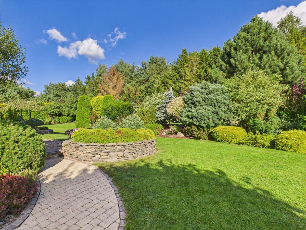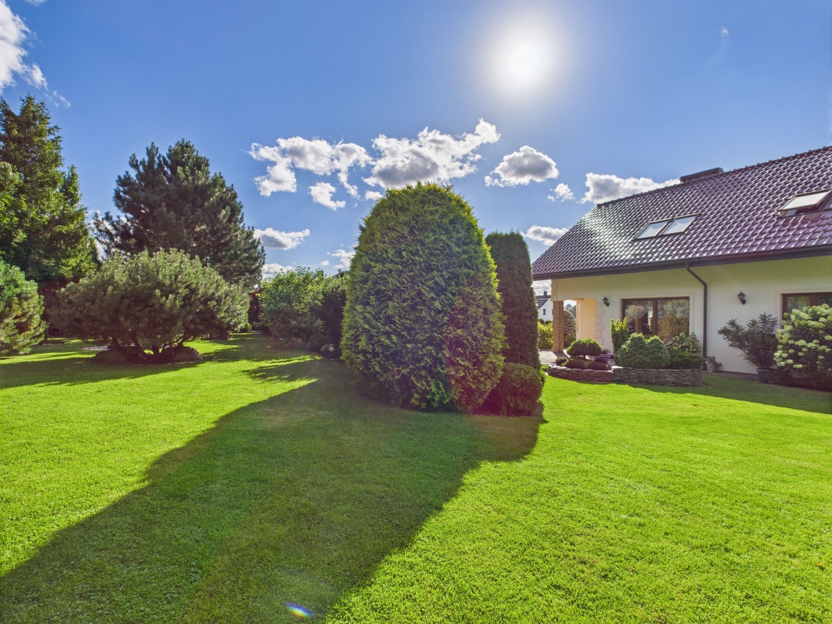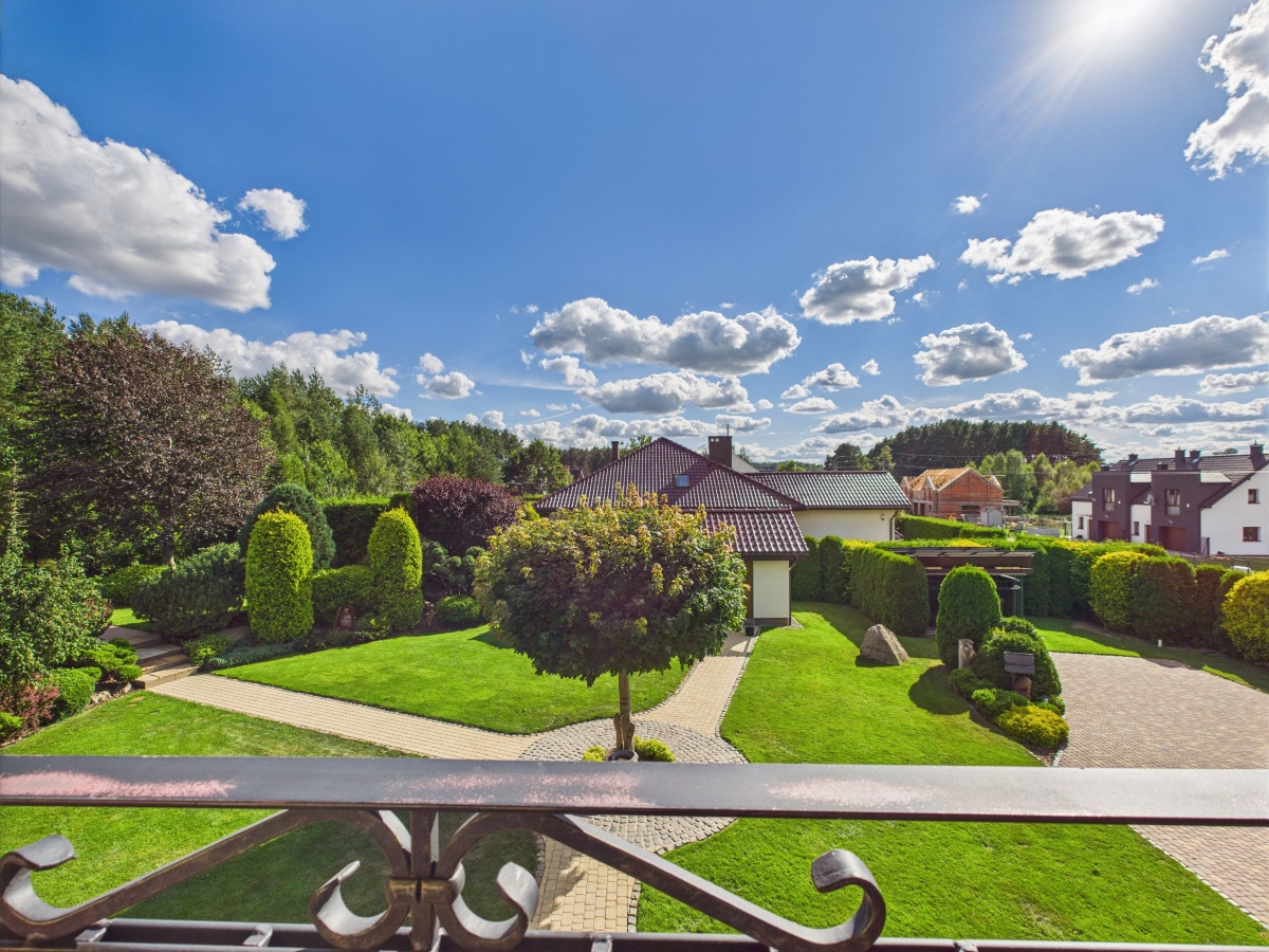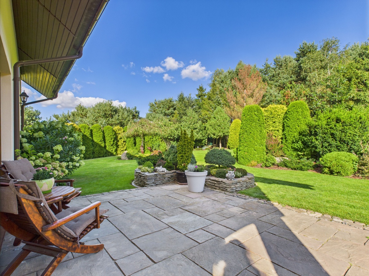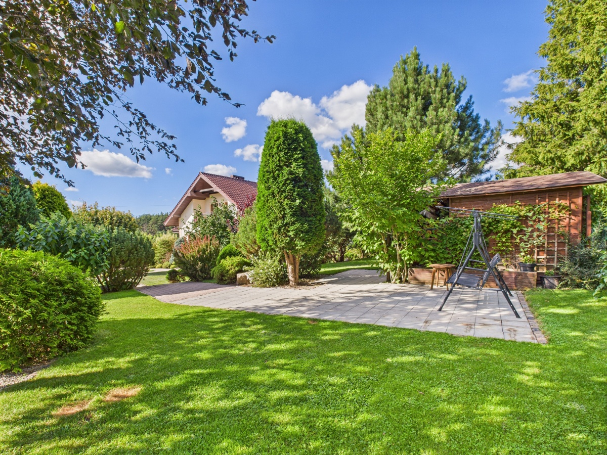 Duży ogród jest idealnym miejscem dla dziecięcych zabaw i dla wypoczynku rodziców, którzy mogą doświadczyć chwili spokoju w głębszych jego częściach.