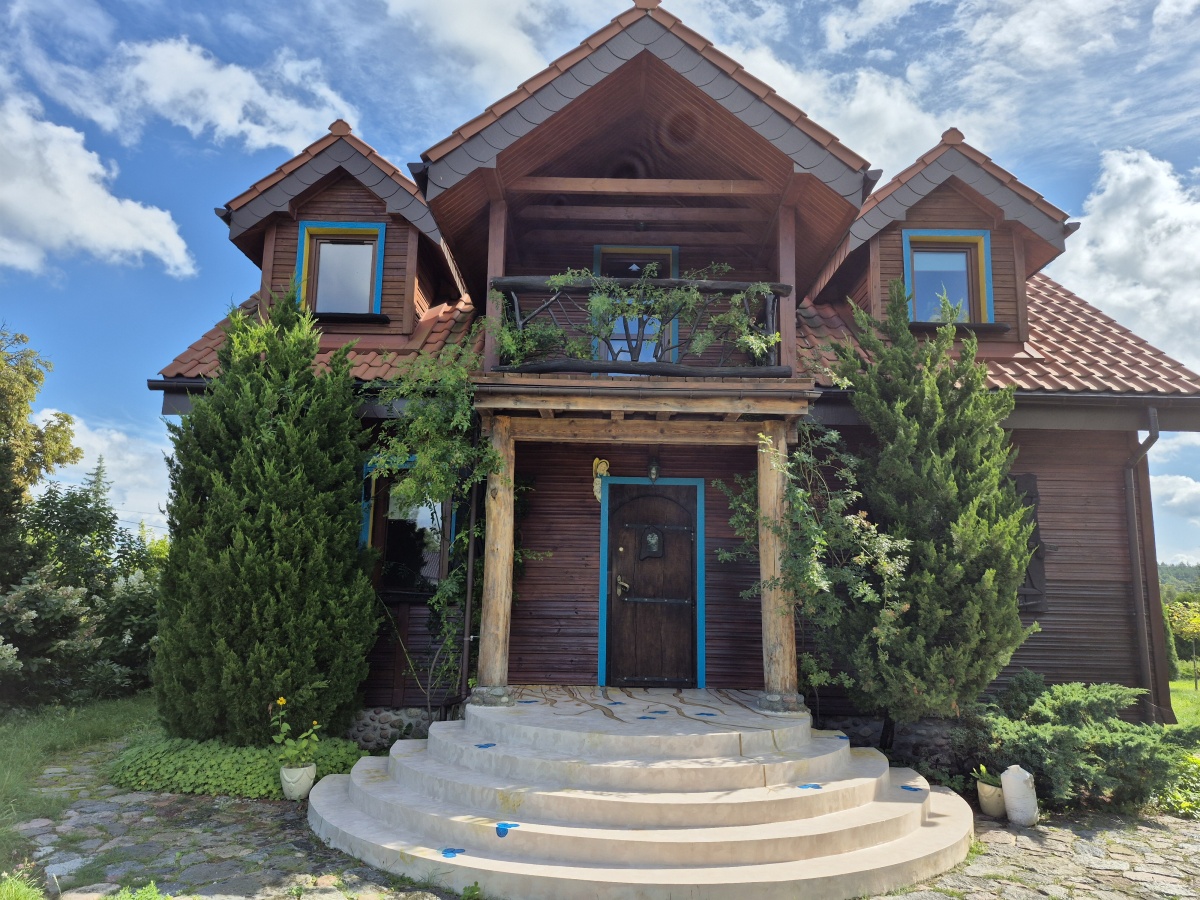 Na sprzedaż bajkowy dom całoroczny z użytkowym poddaszem w Michałkach (Warmia i Mazury), blisko jeziora Kalwa.