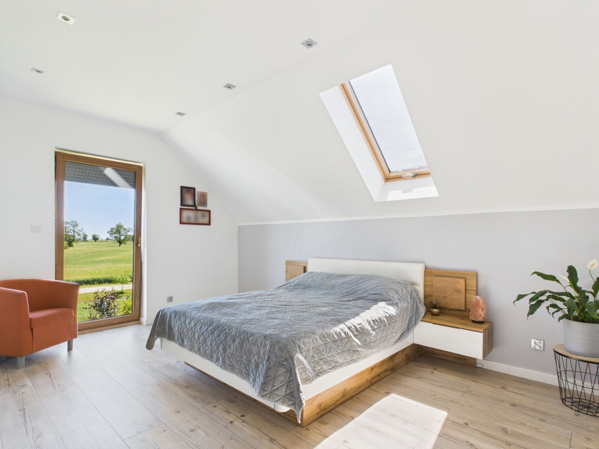 • Okna 3-szybowe z roletami zewnętrznymi sterowanymi jednym pilotem – pełna prywatność i wygoda