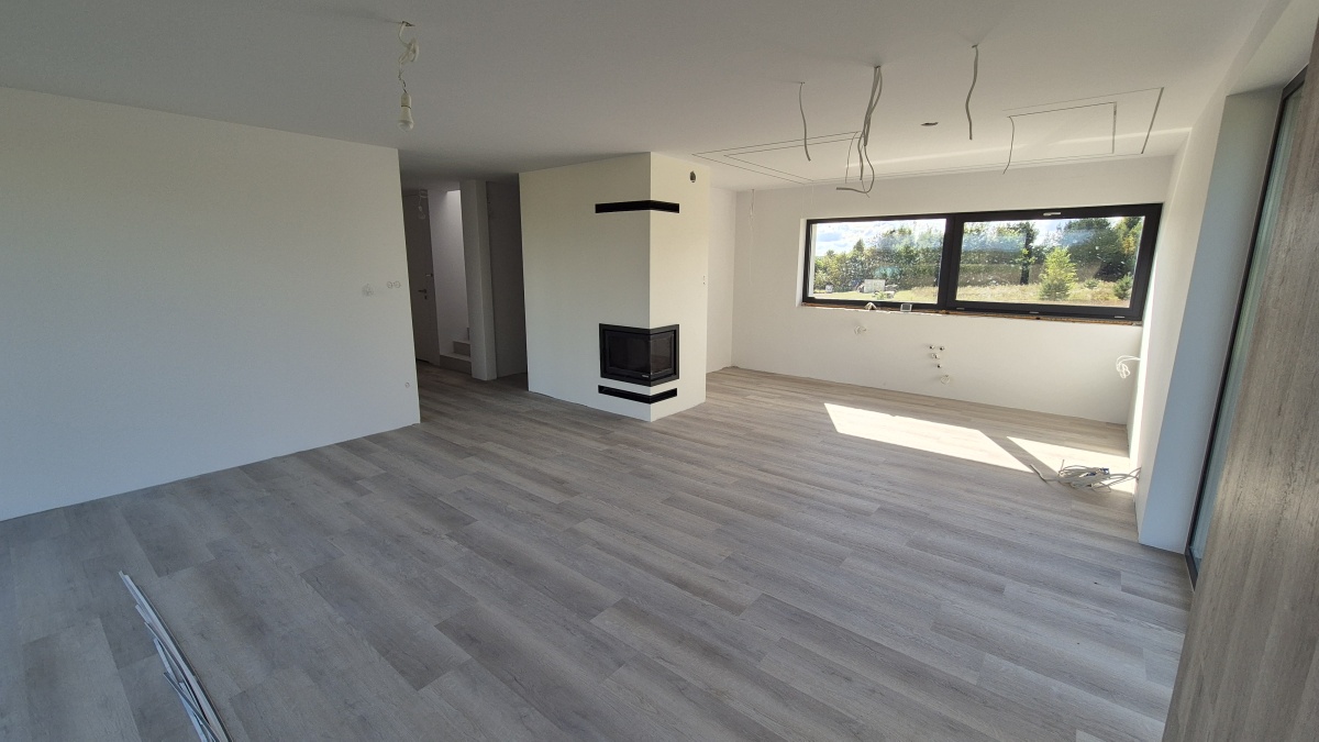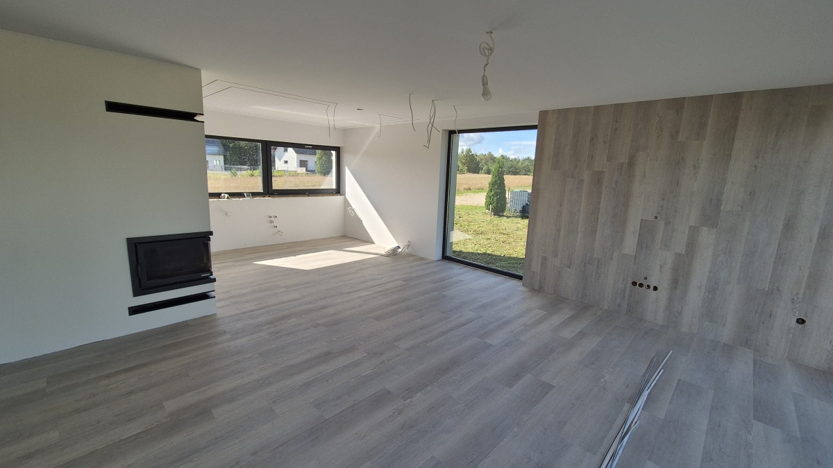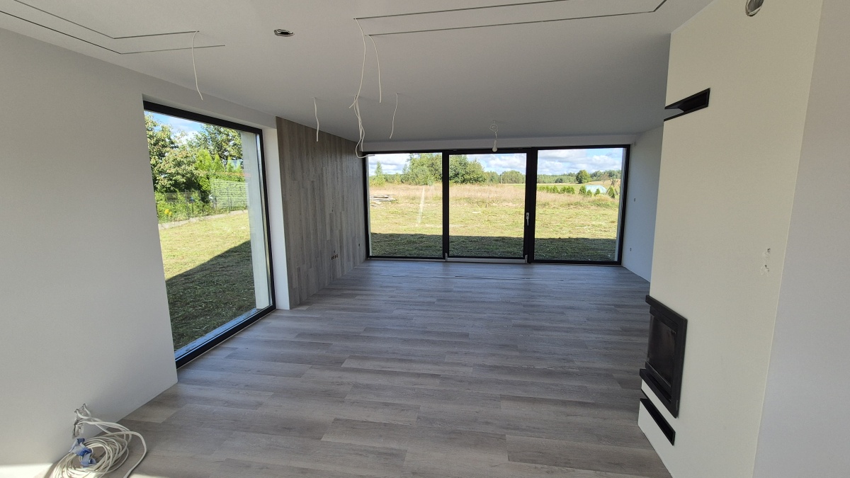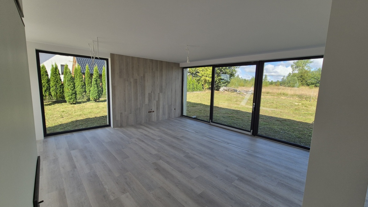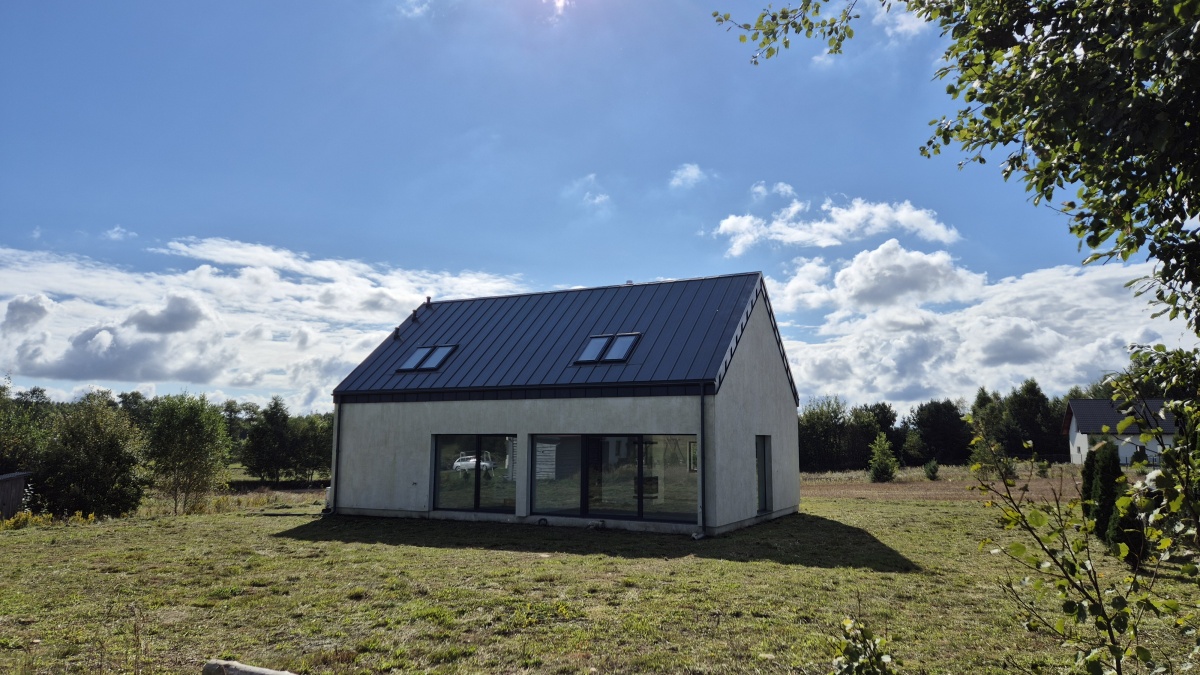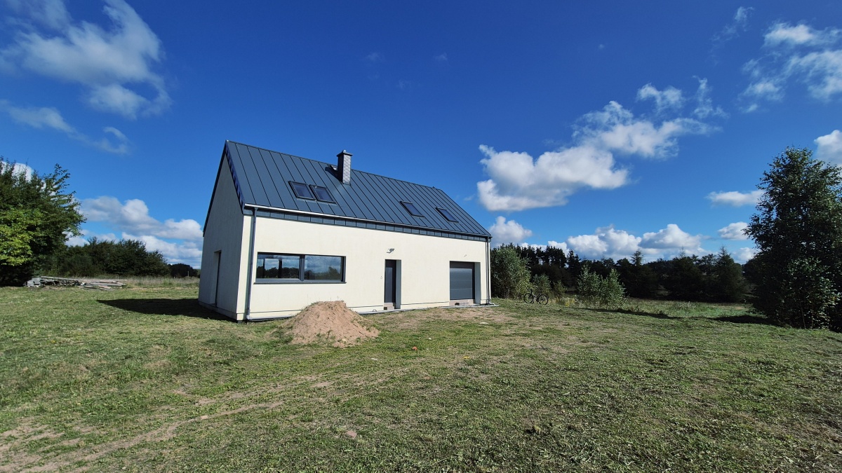 Na sprzedaż nowy dom jednorodzinny ok. 130 m², wybudowany wg projektu Studio 71, na działce 1040 m² w spokojnych Mściszewicach (Kaszuby), tylko 300 m od jeziora.