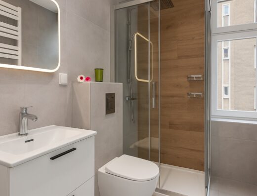 Pokój dzienny i łazienki z podgrzewaną podłogą