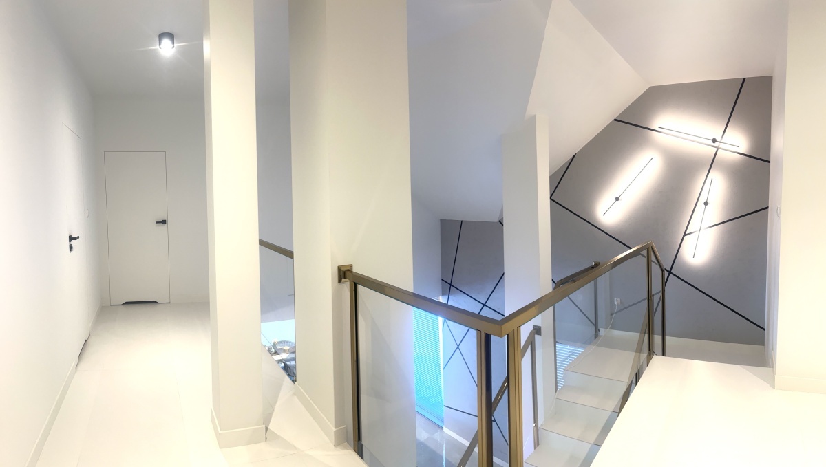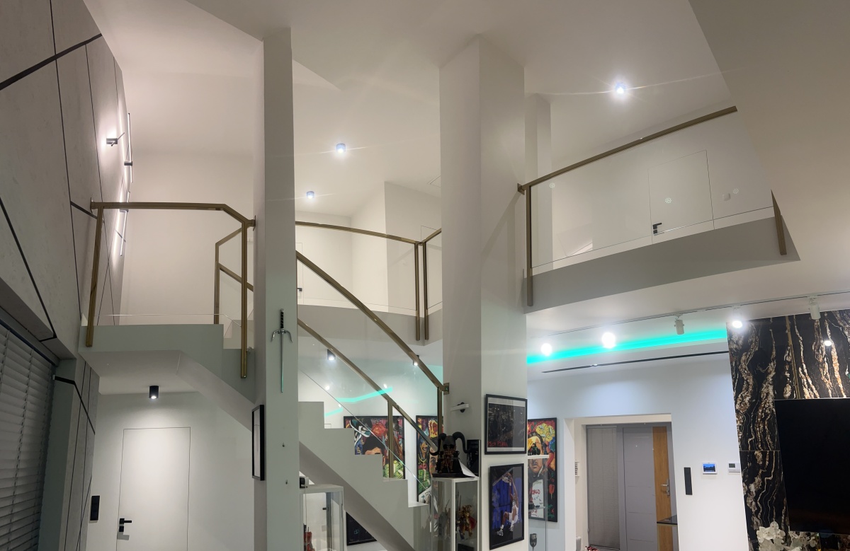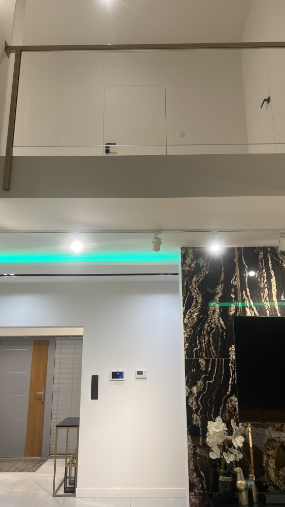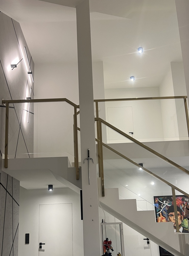 * balustrady szklane wykonane na zamówienie wraz ze złotymi poręczami