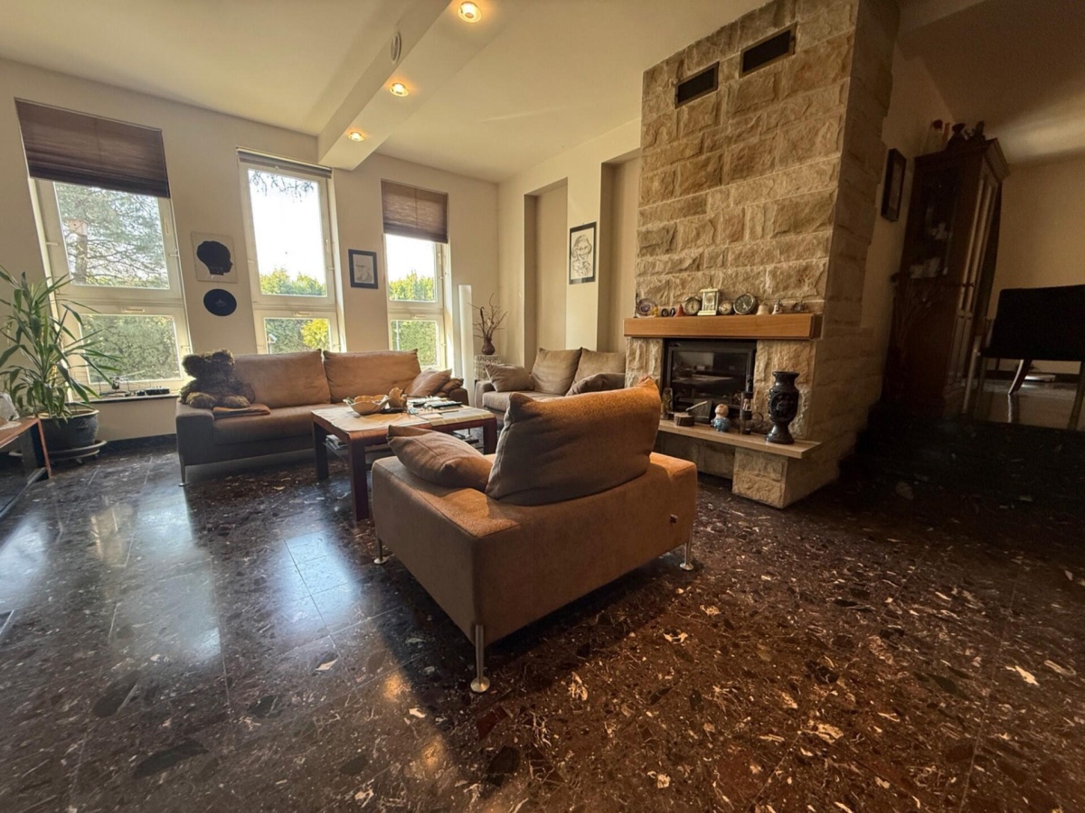 Powierzchnia parteru wynosi imponujące 200 m², co daje wystarczająco dużo miejsca dla każdego domownika. W skład mieszkania wchodzą przestronny salon (73 m²), kuchnia, trzy pokoje, łazienka oraz sypialnia z dużą łazienką i garderobą. Warto zaznaczyć, że budynek posiada także jasne przyziemie pod całym domem (łazienka z pralnią, siłownia, pokój bilardowy, kotłownia, piwnica, garaż oraz użytkowe poddasze (salon, dwa pokoje, łazienka), co łącznie daje 600 m² różnorodnej przestrzeni. Z myślą o relaksie, na terenie posesji znajduje się piękny zadaszony taras (22 m² – można zaadaptować na ogród zimowy), idealny do spędzania czasu na świeżym powietrzu w otoczeniu zieleni i kwiatów, co stanowi doskonałe miejsce na poranną kawę czy rodzinne spotkania.