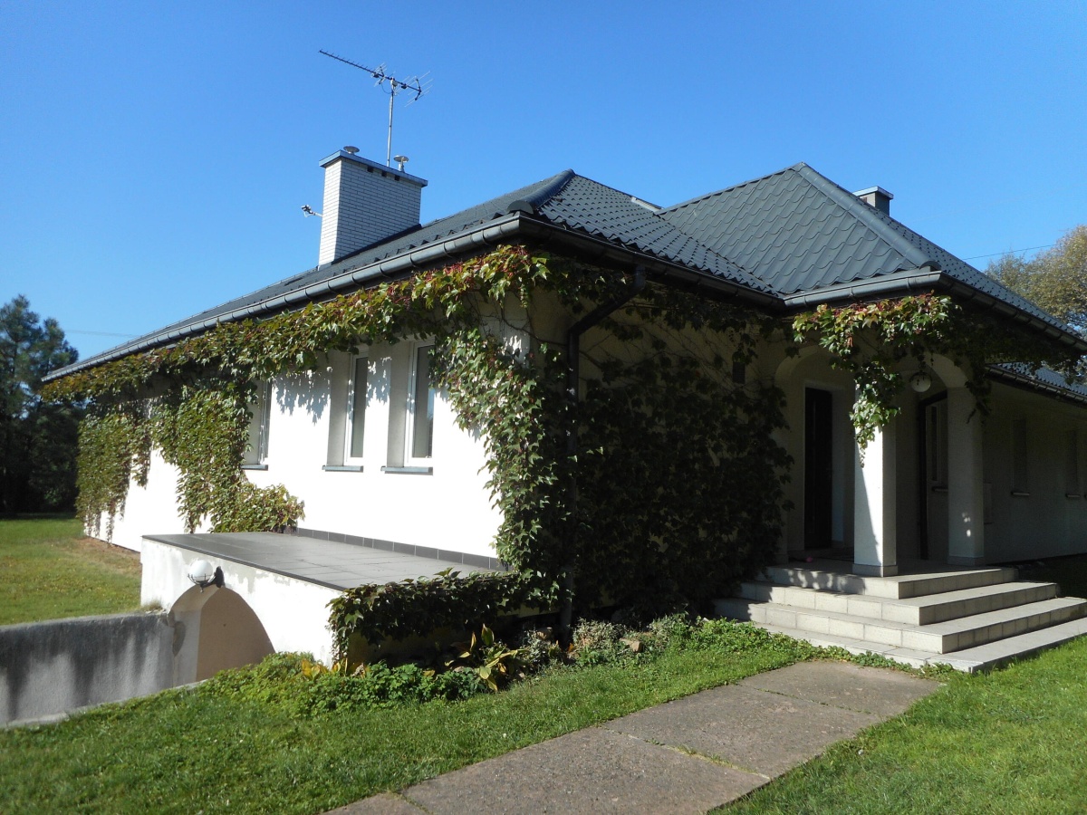 Ponadto, na działce o powierzchni około 17 arów znajduje się wolnostojący duży garaż, a także garaż na jedno auta w przyziemiu. Przy garażu znajduje się płyta betonowa przygotowana pod wiatę, co zwiększa funkcjonalność tego miejsca. Roślinność na działce jest starannie pielęgnowana, co wpływa na estetykę całej przestrzeni oraz wprowadza przyjemny klimat naturalnej zieleni. Budynek ogrzewany jest gazowo, co wpływa na komfort użytkowania oraz efektywność energetyczną nieruchomości. Ogrzewanie podłogowe oraz kaloryfery.