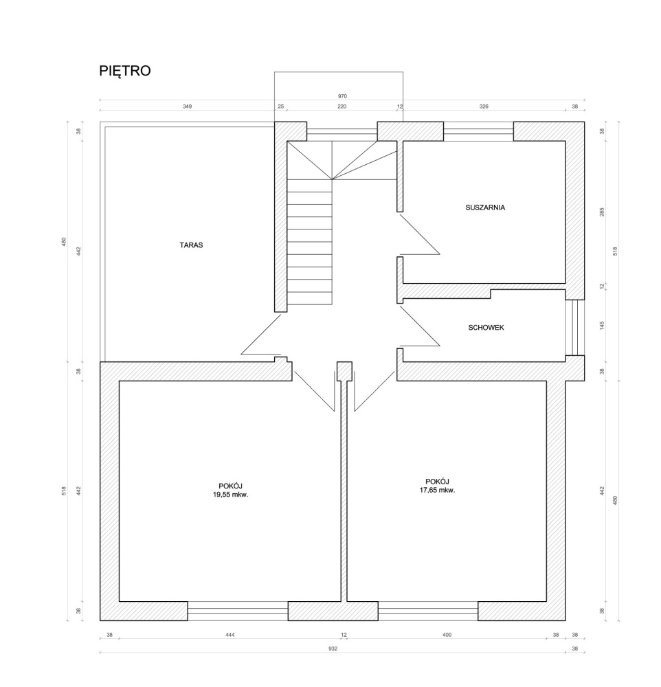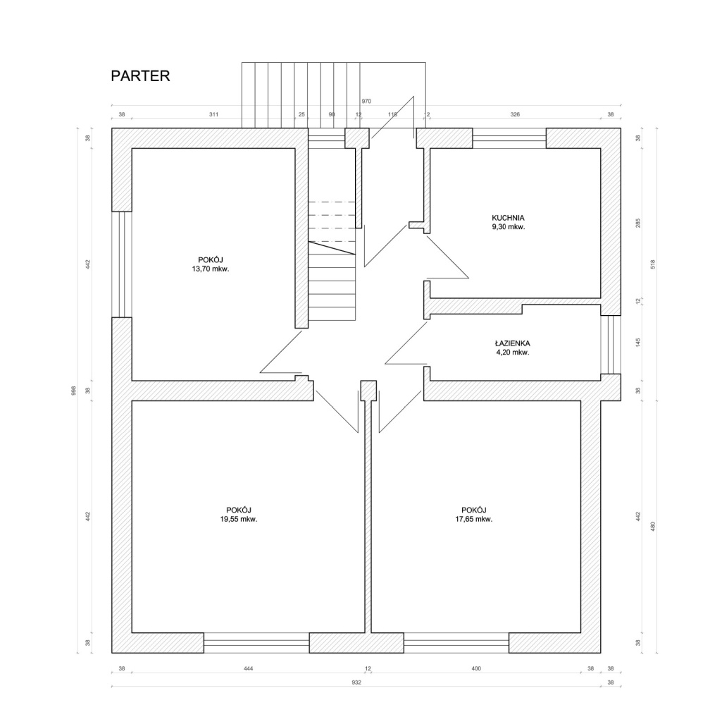Poniżej dokładny rozstaw i metraże pomieszczeń: