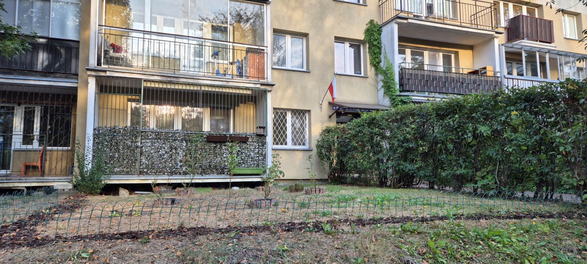 Mieszkanie znajduje się na parterze czterokondygnacyjnego bloku z wielkiej płyty, który jest oddzielony od hałasów pasami zielni na przemian z drogami wewnętrznymi. Ukształtowanie przyległego terenu, od strony zachodniej jest obniżenie, oraz sąsiedztwo niskich bloków od strony wschodniej daje dużo światła. Wszystkie okna są zabezpieczone kratami, również balkon, z którego można wyjść do ogrodu. Jest podpisana umowa z spółdzielnią użytkowania go przez lokatorów. W bezpośrednim sąsiedztwie bloku znajdują się winietowane miejsca parkingowe dla mieszkańców.