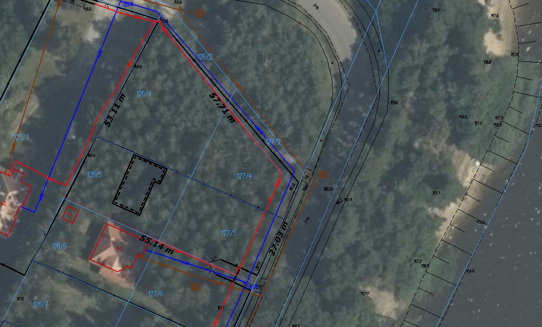 Do sprzedania działka budowlana (nr 126/4; 126/5; 127/4; 127/5) w miejscowości Brudnów nad zalewem w Domaniowie w kształcie trapezu.