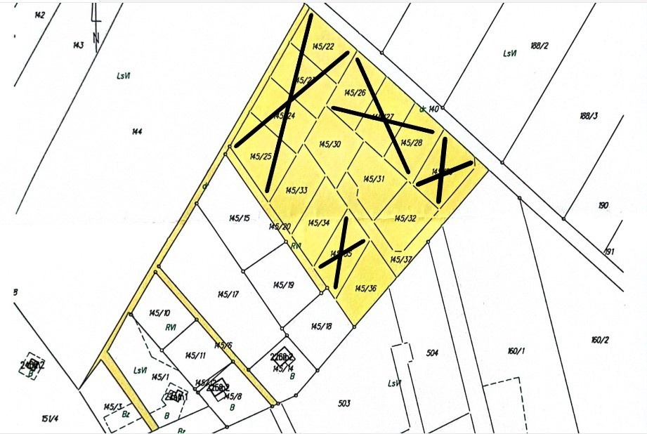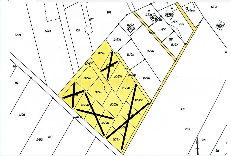 Działki przekreślone krzyżykiem są już sprzedane.