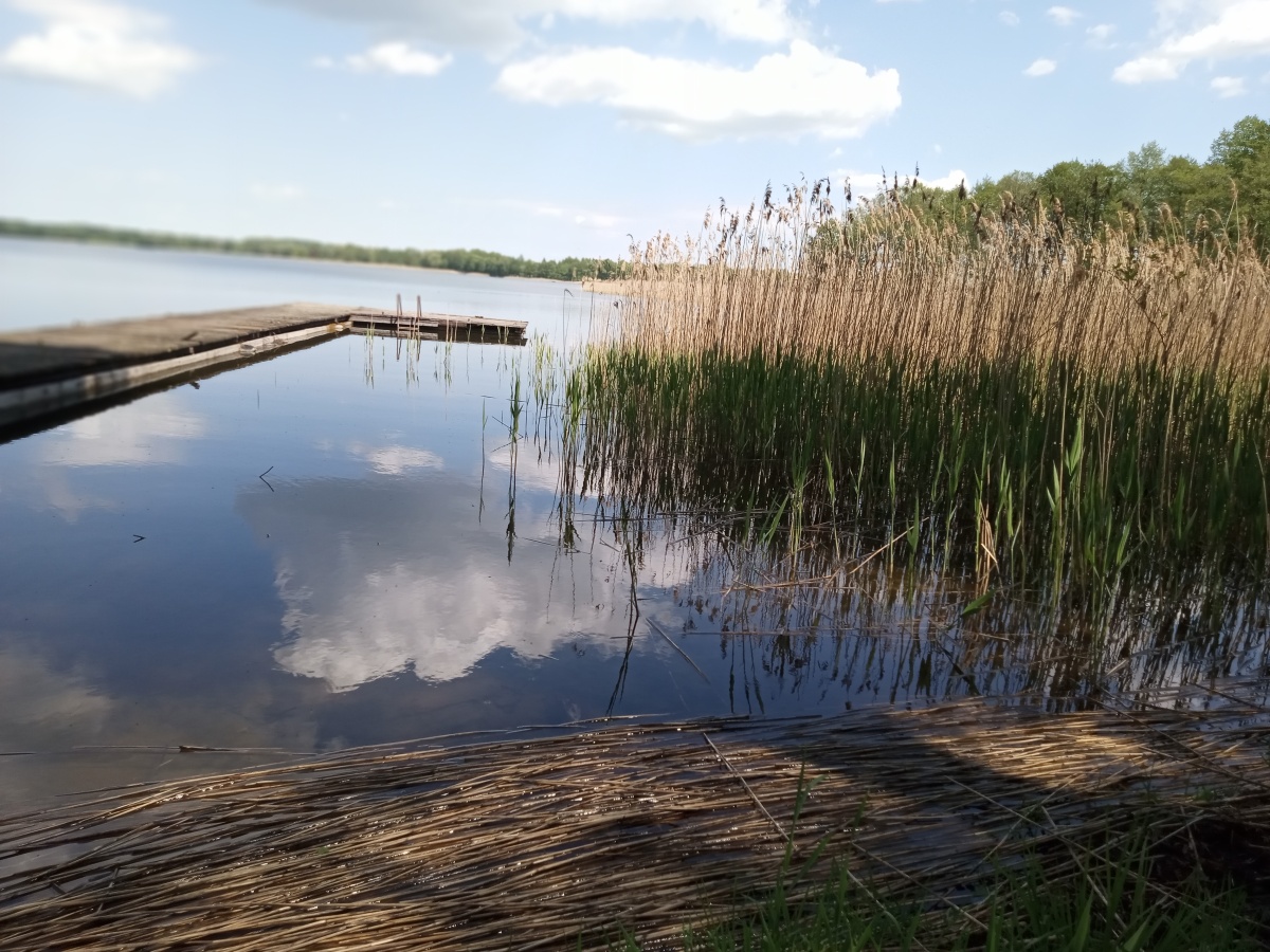 (zdjęcia jeziora z przyszłego pomostu) Pomost oddalony od działki o 2 minutki piechotą