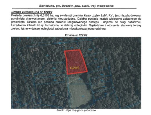 Sprzedam działkę rekreacyjną częściowo zalesioną w Obszarze Natura 2000 Śladowie gmina Słaboszów o powierzchni 1.3224 ha. Działka ta może służyć do wypoczynku i rekreacji czy uprawiania sportu a nawet Paintball. Działka ma bardzo urozmaiconą powierzchnię z racji tego, że w dawnych czasach okoliczni mieszkańcy wybierali z niej skałę wapienna na budowę budynków. Pełno w niej zagłębień a nawet jest urokliwy wąwóz. Działka znajduje się w pobliżu hotelu Dosłońce Resort Wellness & Farm (6 km). Z Krakowa dojazd autostradą do zjazdu Bukowska Wola potem w kierunku na Racławice, odległość od ronda działki około 9,6 km