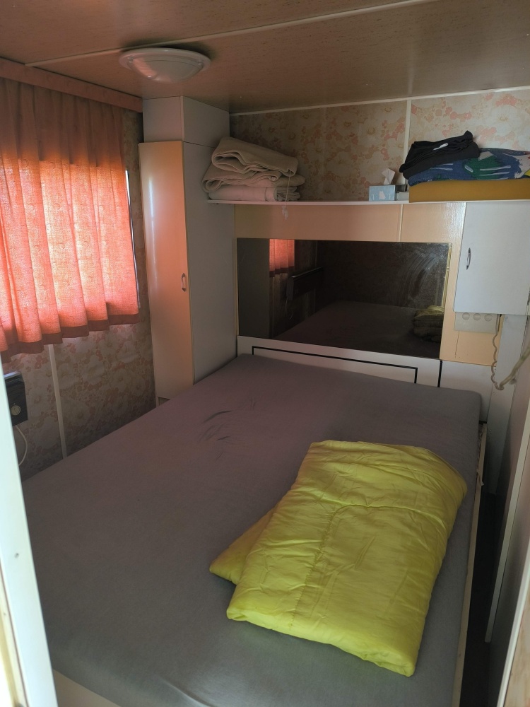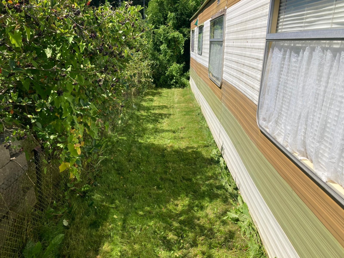 Działka posiada doprowadzony prąd oraz wodę które to też są podłączone do przyczepy. W przyczepie mamy do dyspozycji dwie sypialnie, kibelek, prysznic, kuchnie z lokówką i palnikami gazowym (na butle) oraz salonik ze jadalnią.
