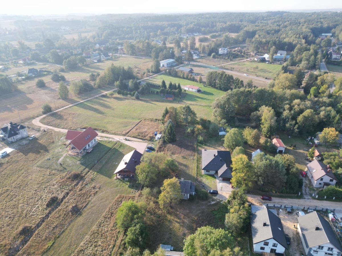 Działki położone są w okolicy domów jednorodzinnych, w otoczeniu lasów i w bezpiecznej odległości od rzeki na wzniesieniu.