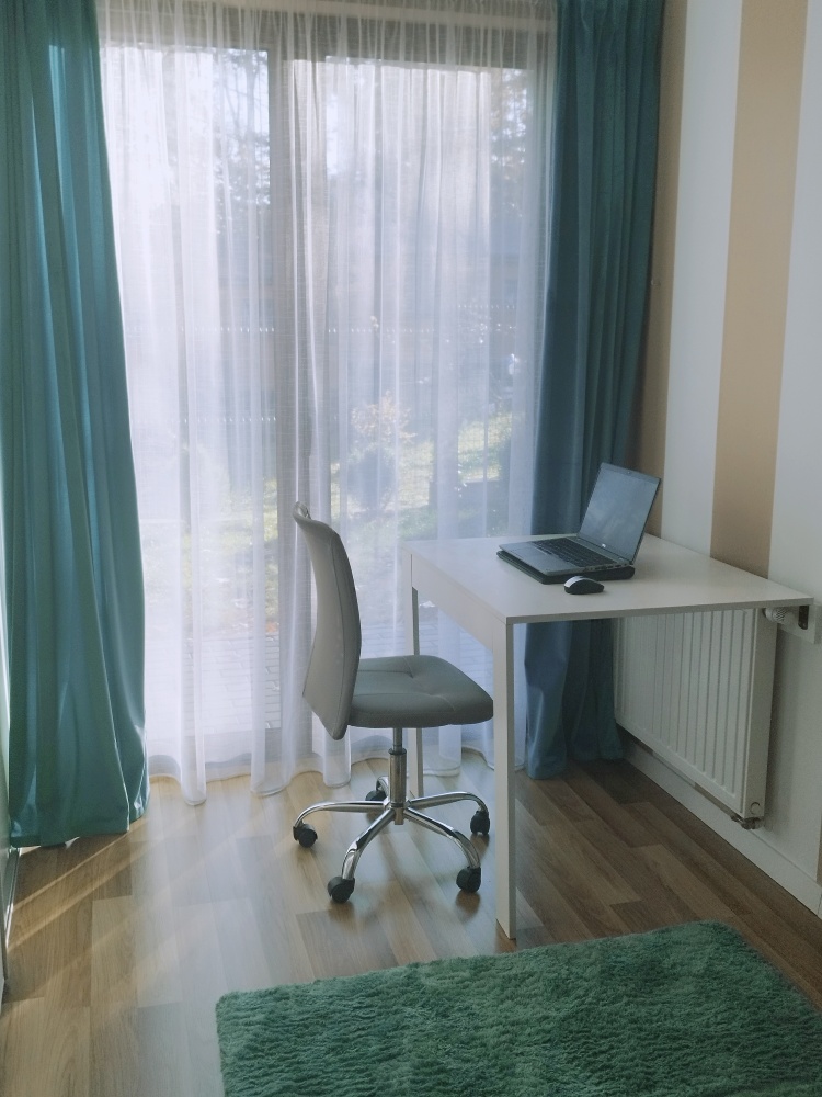 – dwóch sypialni: 16 m2 – z możliwością aranżacji na pokój dla dzieci oraz 11 m2 – idealna na gabinet do pracy lub pokój gościnny (łóżko chowane w szafie, dwa składane biurka),
