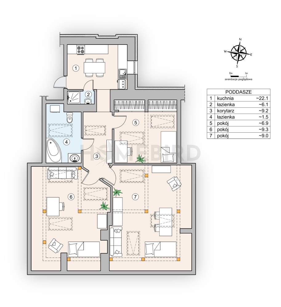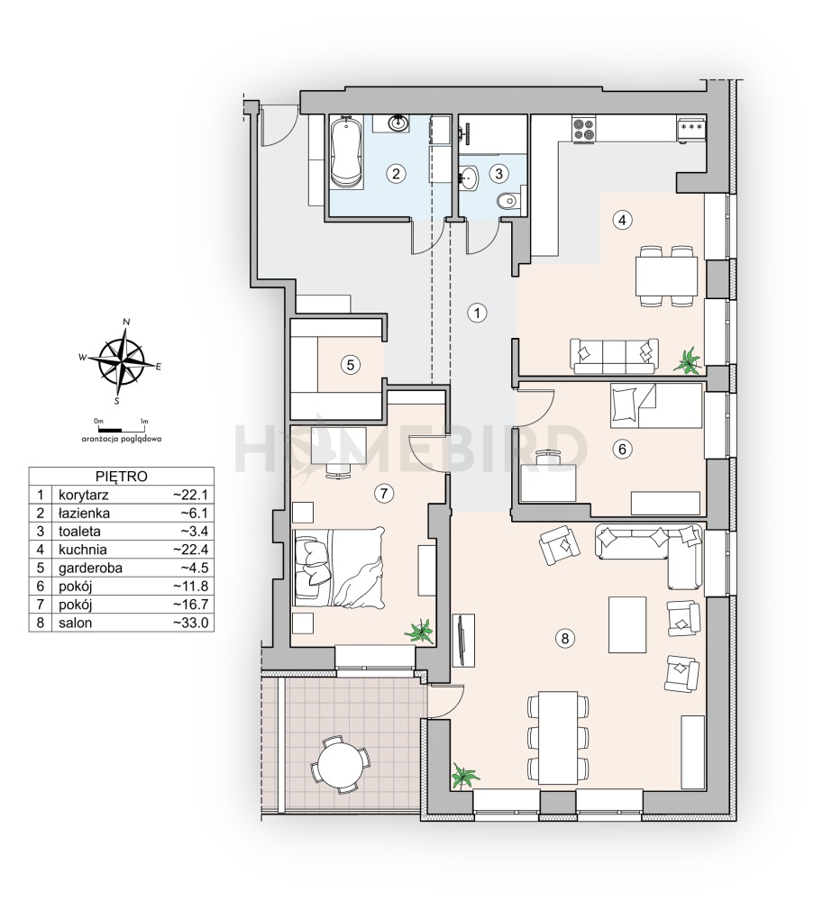 – przestronny salon z wyjściem na duży, zadaszony balkon.