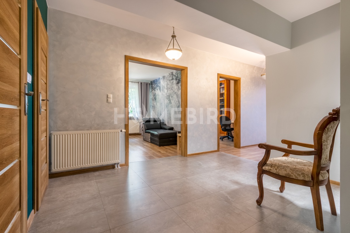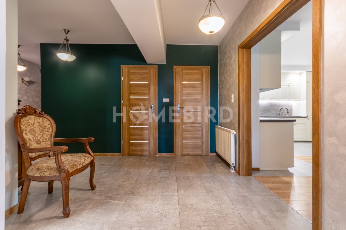 Na 1. piętrze położone jest mieszkanie z balkonem, do którego prowadzi wejście przez wspólną klatkę schodową. Powierzchnia mieszkania to 119,77m2, a do dyspozycji są: